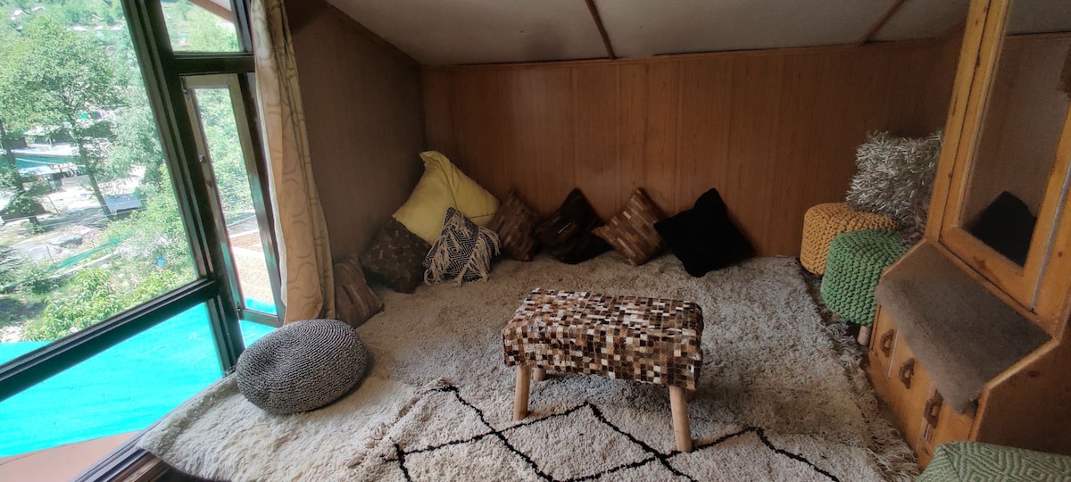 Charming wooden cottage rooms, just 4-5 steps from a tranquil river stream. Enjoy stunning mountain and river views from your bed, complemented by a private balcony. Ideal for family or friend gatherings, our spacious property offers diverse activities. Savor delicious multi-cuisine dishes at our on-site restaurant and cafe. Experience unmatched hospitality from a retired army Family. Book your stay for a serene escape! and tranquil getaway.