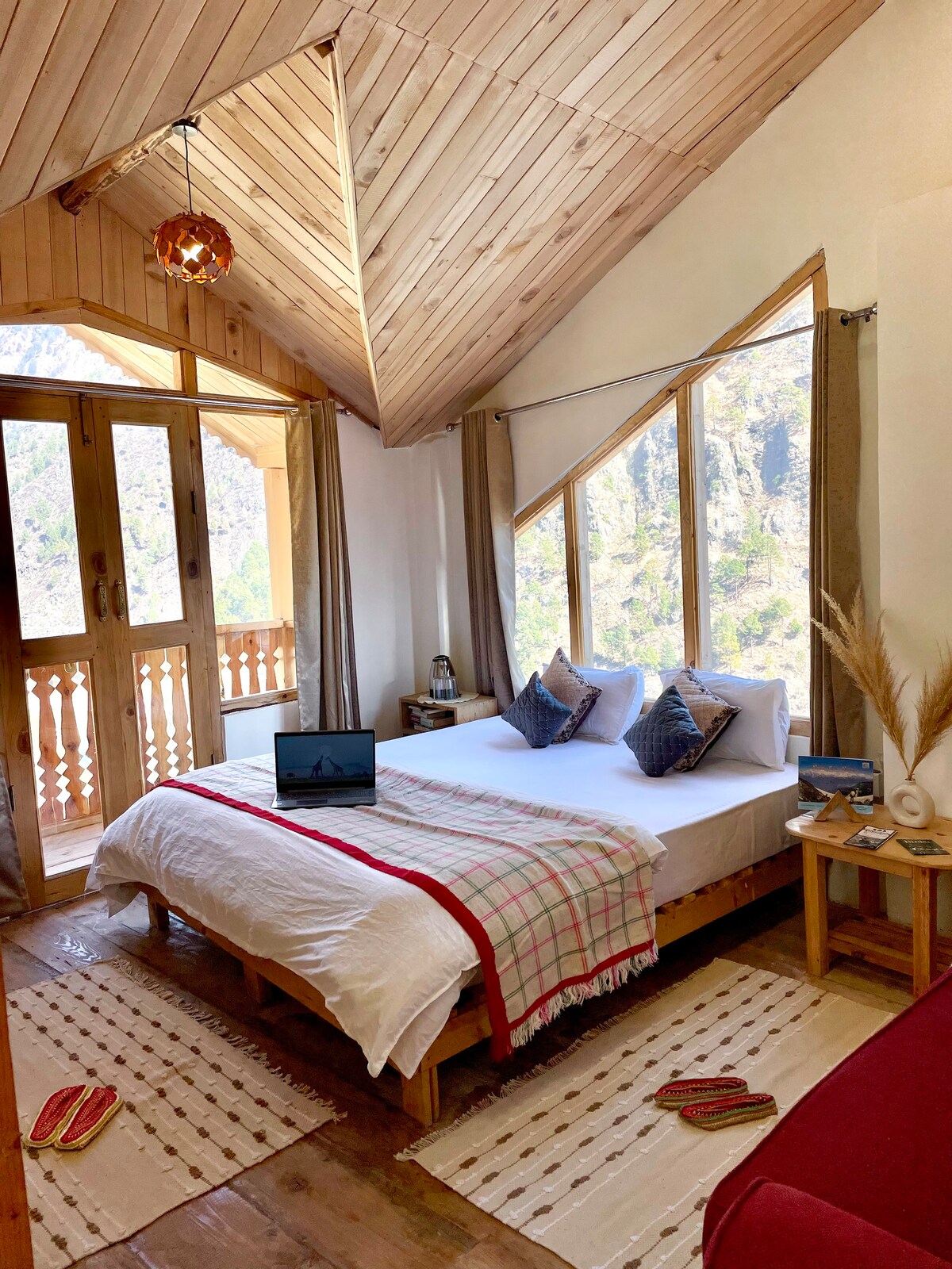 Our mountain view room offers a retreat into nature's grandeur. As you step onto the private balcony, a breathtaking panorama unfolds before your eyes The room itself is a haven of comfort and style, with its wooden interior In the evening, the balcony transforms into a front-row seat to nature's nightly spectacle. Our mountain view room is more than just a place to stay—it's an experience. Experience the magic of the mountains from the comfort of your own private retreat