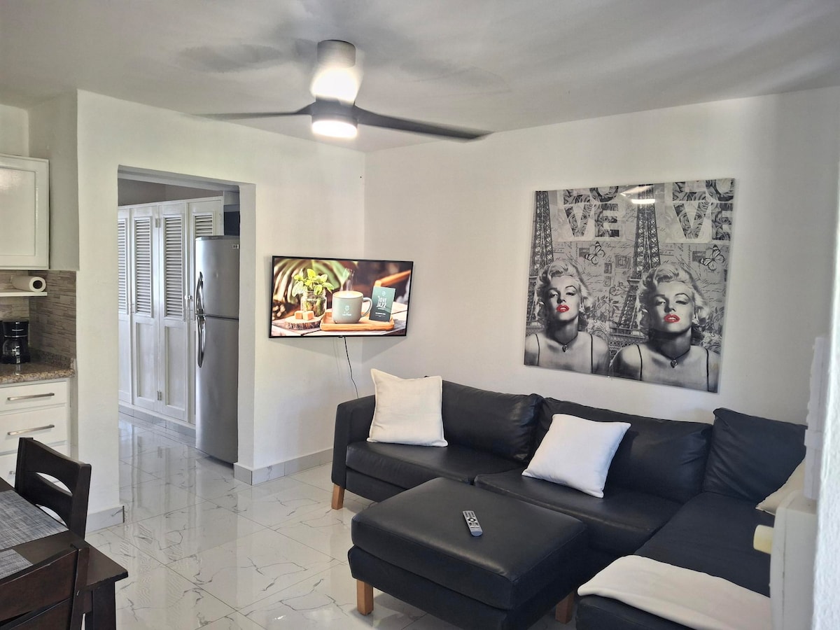 Stay in the heart of Sosua at Plaza del Sol, Edificio Banco Reservas. This fully equipped condo offers a queen bed, 2 smart TVs, IPTV, AC, fans, high-speed WiFi, hot water, safe, and a complete kitchen with dining area. Enjoy 24/7 electricity, security, and free parking. Steps from Super LQ, Hard Rock Café, and just a 5-minute walk to the beach everything is within reach, no car needed. Perfect for couples or travelers seeking comfort, convenience, and the best location in Sosua.