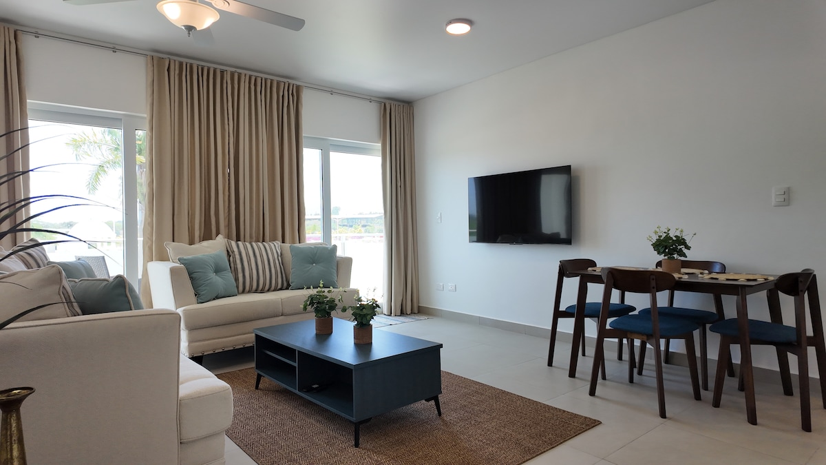Escape to our stylish 1-bedroom retreat in Sosúa Ocean Village, perfect for 2 guests. This modern apartment features a King bed, high-speed WiFi, a fully equipped kitchen, and a private balcony with a serene pool view. Enjoy resort-like living in a secure, gated community, just minutes from the vibrant towns of Sosúa and Cabarete. Ideal for couples, solo travelers, and digital nomads seeking comfort and convenience on the North Coast.