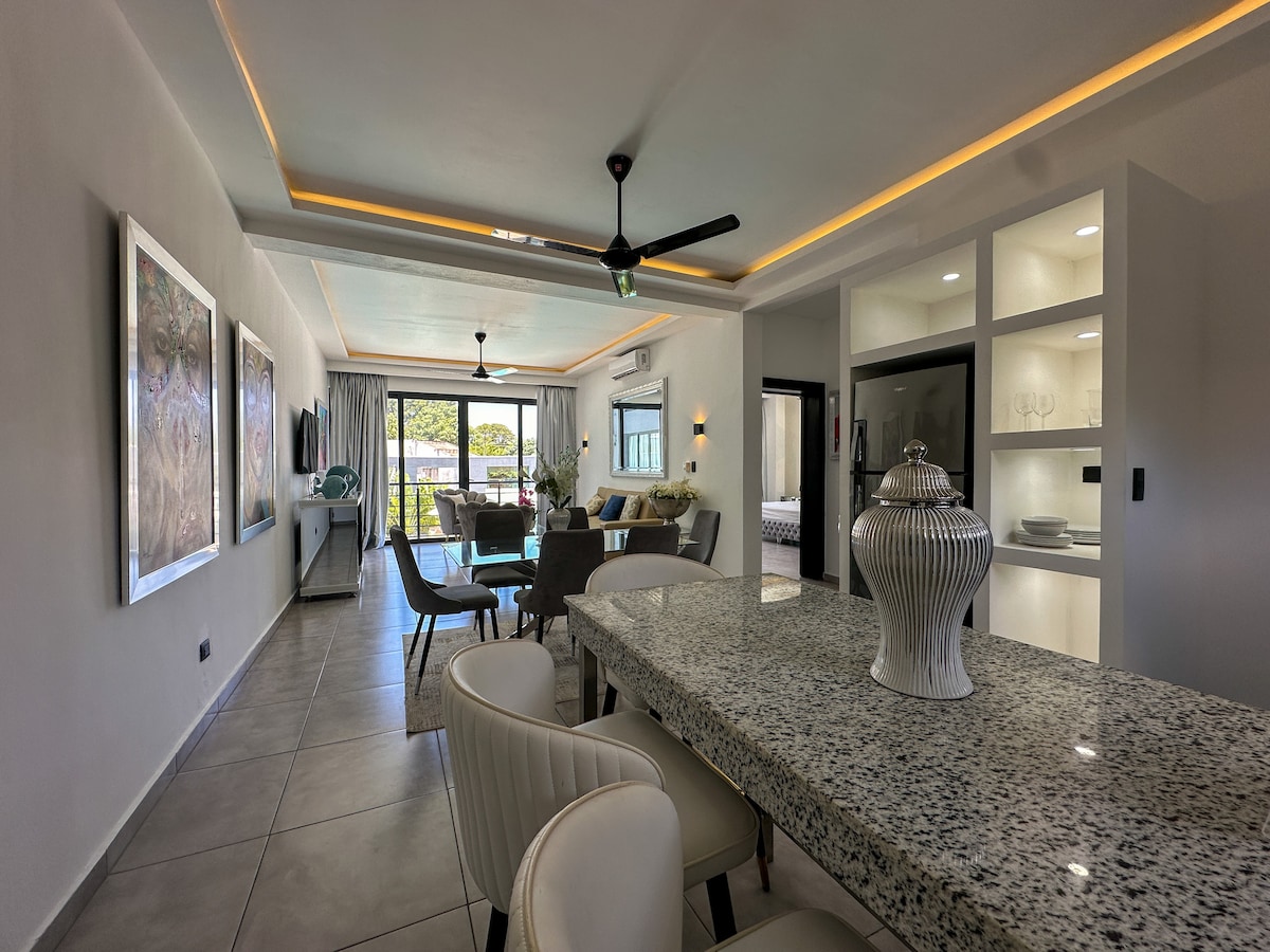 Just steps away from the beach, this luxurious apartment located in the beautiful area of Cabarete Bay will let you experience the ocean to the fullest. Sit back, breath in and make the most out of the true seaside atmosphere. Savor your dinner on the patio, have a walk under the palm trees and let go in the azure waters of the Caribbean. Cabarete offers perfect conditions for both kiteboarding and surfing, and a lively nightlife experience as well, so you'll always have plenty to discover.