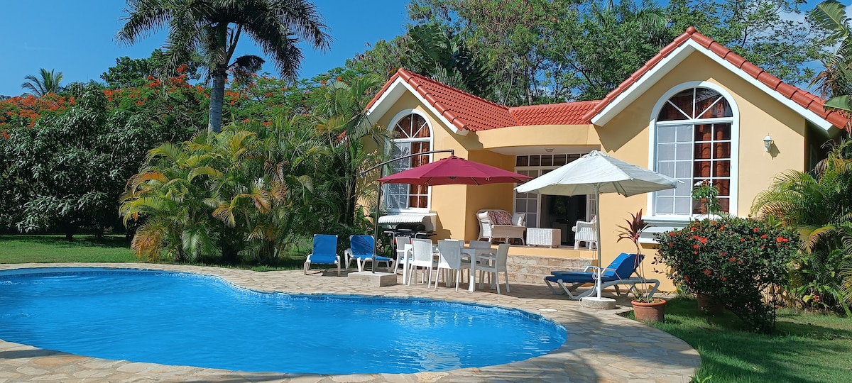 热带别墅,宽敞泳池和绿地,靠近Sosua