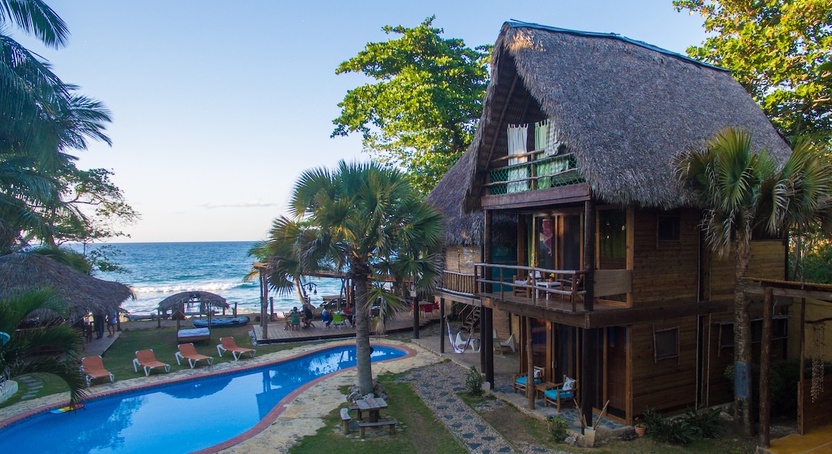 Our Boutique Hotel right on the Beach , Perla Marina, El Encuentro Surf beach, eco trails, kitebeach, cabarete, sosua, puerto plata. 16 private rooms and bungalows with their own private bathroom and balcony You’ll love my place because of Gorgeous natural eco lodge tree houses and rooms on a private beach, 2 pools, 4 jacuzzis, bar and restaurant , amazing views! . My place is good for couples, solo adventurers, business travelers, big groups, and furry friends (pets).