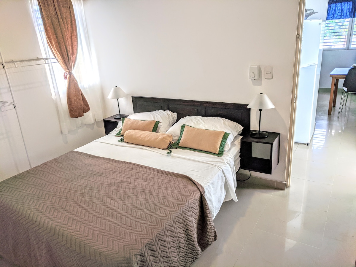 One-bedroom apartment located in the most comfortable, quiet and private place in Sosua. Close to the best restaurants and beaches. In addition to a large pool where you can sunbathe and relax. The apartment consists of a spacious balcony, open patio, 24/7 security, air conditioner, kitchen, washing machine, wifi, and a smart TV.