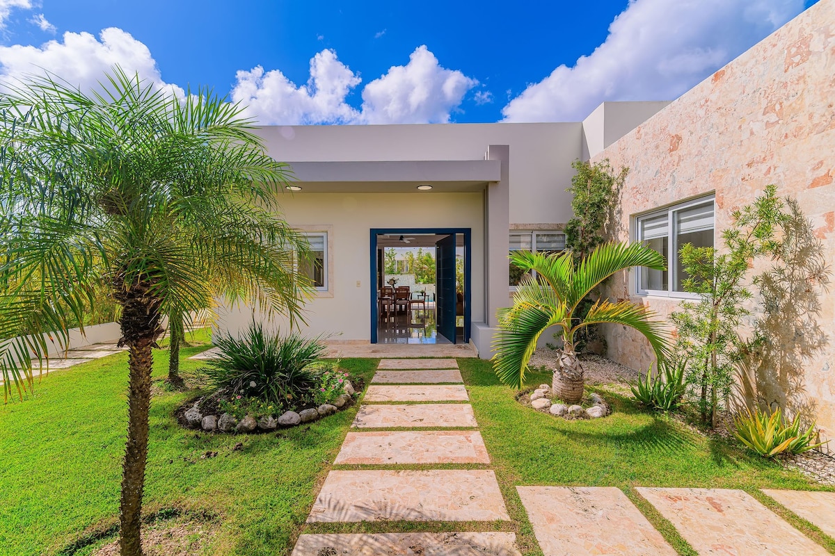A luxurious 3-bedroom 5 bath villa with each bedroom having it's own private on-suite. Featuring modern décor, spacious open floor plan, private pool with waterfall, outdoor shower, private cabana with built in bbq and attached half bathroom, beautiful yard, air conditioning (both in bedrooms and living room), high-speed fiber optic internet. Located in an exclusive and safe private community and perfectly located near the Airport, restaurants, shops and beaches