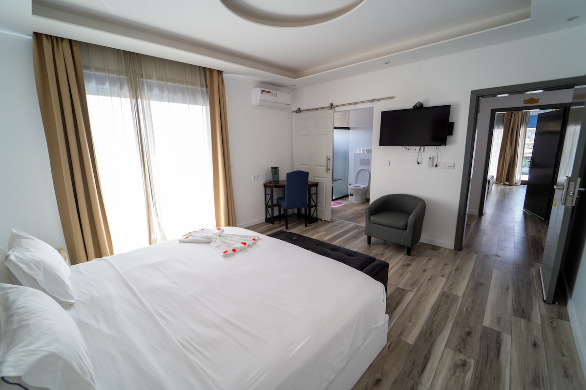 Cruzeiro Guest House is in Achada São Filipe, right in front of the beach and close to local amenities. Set in a quiet area, it’s ideal for a relaxing vacation. Rated #1 for value, safety, and cleanliness, it offers free Wi-Fi, AC, hot water, and easy access to shops. Our 8 rooms include private bathrooms, TV, fridge, and a patio with ocean view. Guests also enjoy our rooftop kitchen and affordable restaurant.