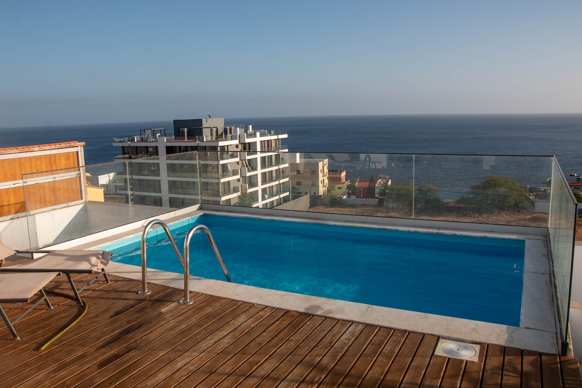 ⭐️Magnifique Duplex avec Piscine Privée et Vue Panoramique - Palmarejo Grande Découvrez ce superbe duplex, flambant neuf, situé à Palmarejo Grande, dans la capitale dynamique de Praia (Cap-Vert). Niché au cœur d’une résidence privée, ce logement combine confort, modernité et emplacement idéal. À seulement 5 km de la mer et du centre-ville (restaurants, centre commercial, clinique privée, transports en commun accessibles), il se trouve également à 9 km de l’Aéroport International Nelson Mandela.
