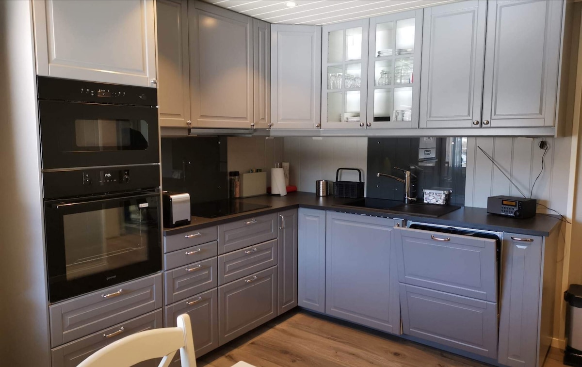 Newly built mountain lodge (2022) in massive wood. The apartment is inviting and cosy, with interior in Scandinavian style. You will find all the comfort and equipment you need to relax & enjoy delicious food and company after an active day! Have your morning coffee outside in the sun, overlooking the mountain tops. Light a fire, enjoy the views from the sofa & makes use of our books or boardgames. Maybe you prefer watching a movie on The Frame? Have a good night sleep in the fresh air!