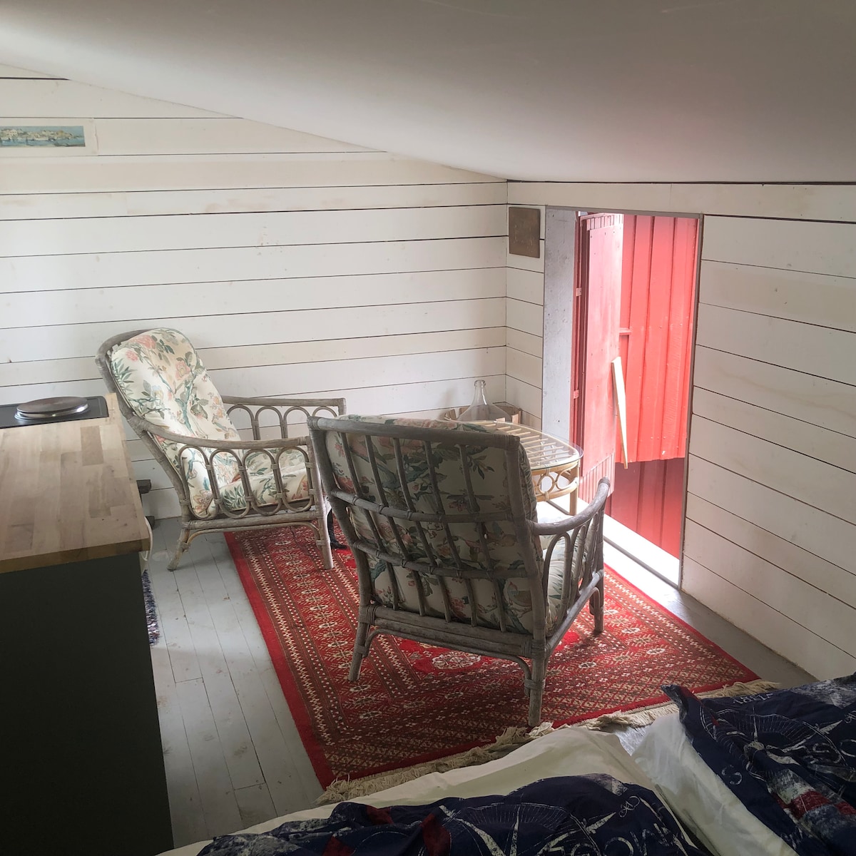 Detta speciella ställe ligger nära allt, vilket gör det lätt att planera din vistelse. Egen ingång och havsutsikt. På väggarna hänger verk från konstnärer som varit verksamma på Smögen. Tack vare att boendet är litet med enkel standard blir det väldigt mysigt och unikt. Notera att boendet är ca 12m2 och har inget kök och ingen toalett. Men det finns ett enkelt pentry samt tillgång till toalett och dusch finns i närheten.