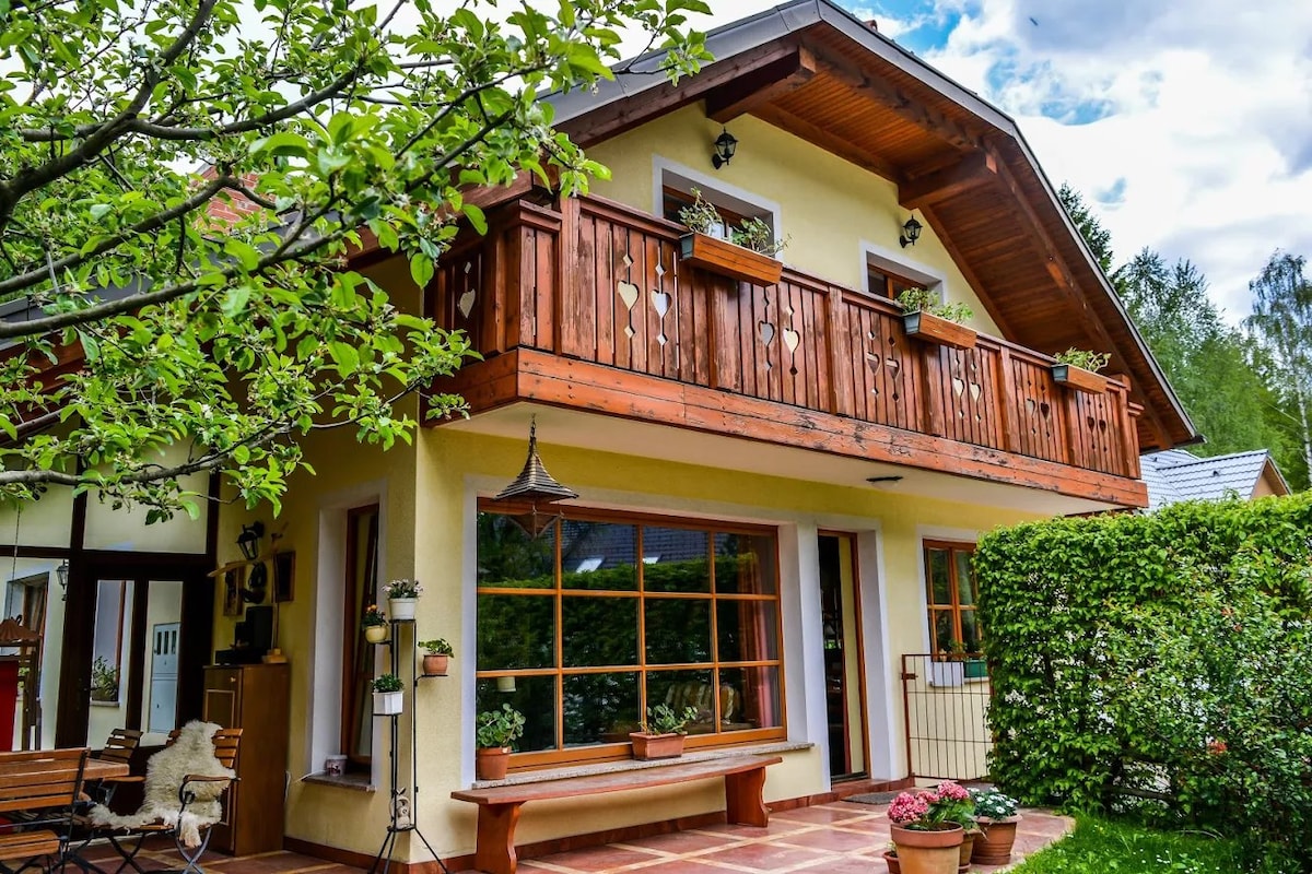 ( 1 FREE Sauna session for each 3 nights of reservation) Other guests: 1 Sauna session 10 eur/guest and minimal 20 eur (if it is just 1 person) Beautiful family friendly alpine house with amazing spacious garden and a modern sauna and yoga/gym place is situated in pristine country village Zasip, a short drive to lake Bled (4km) and walking distance to Vintgar gorge (2km). Enjoy the charming green scenery and infinite tranquillity. Read a book in a quiet cosy corner or have a nice afternoon BBQ.