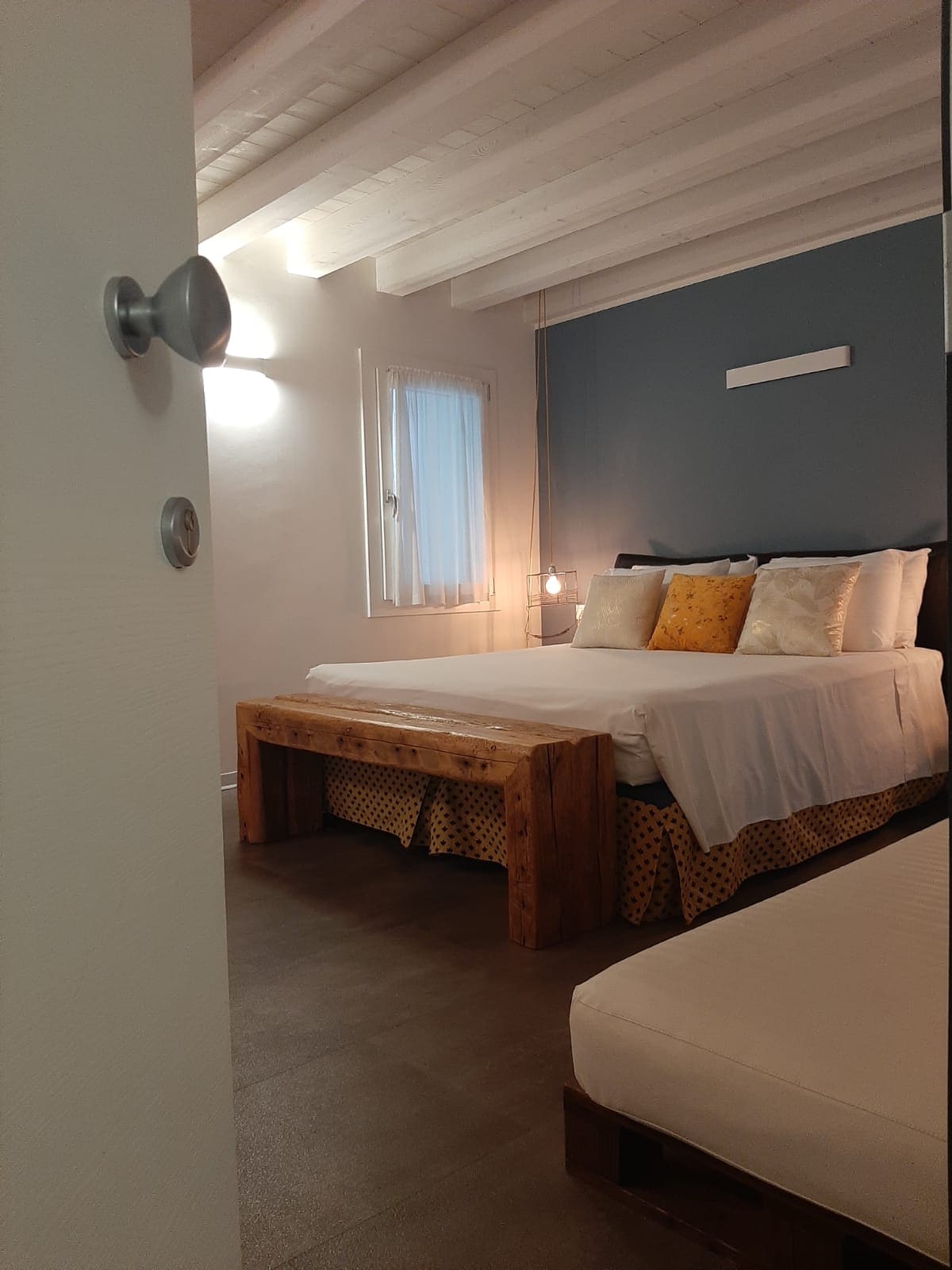 Accogliente "porzione" di tipica casa terra/cielo del centro storico di Sottomarina a pochi passi dal mare, stile rustico e moderno, perfetto per coppie con voglia di mare e relax. Situato al primo piano (con ascensore) ha una camera spaziosa con letto matrimoniale, una letto tipo futon per una terza persona, luci soffuse e dettagli in legno, bagno privato con doccia ampia e piastrelle decorative, aria condizionata, WI-Fi e tutti i confort essenziali. Ti sentirai subito a casa!