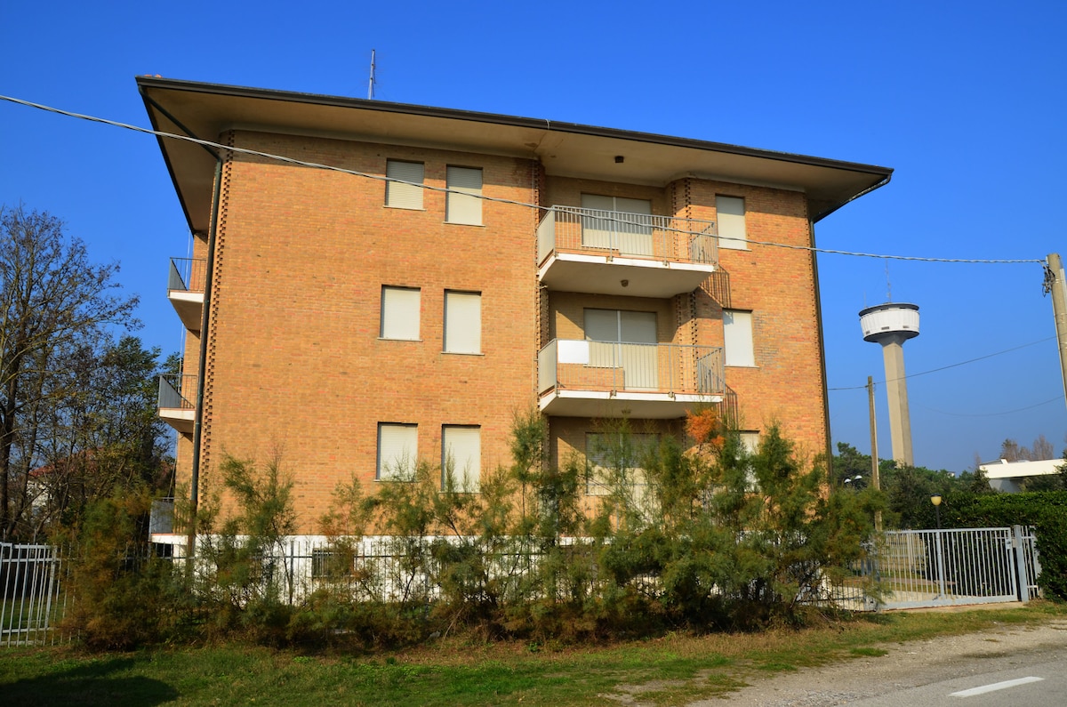 Spacious two-room apartment of 33 square meters with Balcony, consisting of a double bedroom and living room, LCD satellite TV with Sky channels, equipped kitchen, Nespresso coffee machine, free Wi-Fi and bathroom with washing machine. Parking space included, bicycles and in the summer, the property offers you a dressing room, umbrella and 2 sun loungers included in the price. We are 60 km. from Venice, reachable by public transport in an hour and a half. Breakfast at € 5.00 per person per day.