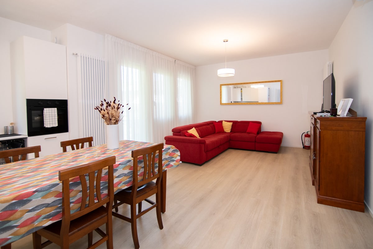 Appartamento arredato a nuovo in zona centrale con parcheggio privato, composto da camera matrimoniale, cameretta, bagno e cucina completa di elettrodomestici con divano, dotato di aria condizionata, tv e wi-fi e terrazzo con vista libera a soli 5 minuti a piedi dalla spiaggia. In loco è possibile richiedere servizio spiaggia e bici. Si presta a tutte le esigenze turistiche: è un luogo tranquillo per chi vuole riposare e ricaricarsi di nuova energia.