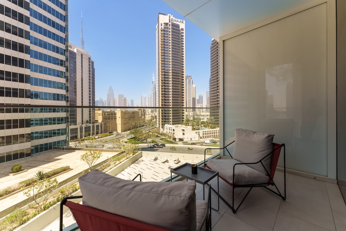 Chic studio in the heart of Dubai with stunning skyline views from your private balcony. Just a 7-minute walk to The Dubai Mall and the iconic Burj Khalifa, you’ll be steps away from world-class shopping, dining, and entertainment. The apartment is fully equipped for business or leisure stays, with luxe hotel-style linens, fast WiFi, a smart TV, and a complete kitchenette. Guests also enjoy free access to the gym and outdoor infinity pool in the building.