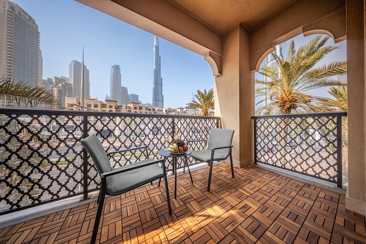 豪华1床,露台5分钟到迪拜购物中心,哈利法塔