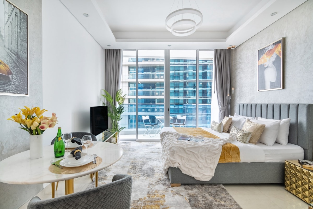 Enjoy our complimentary Desert safari for our guests.* Our spacious, modern apartment in a coveted Dubai neighborhood offers a perfect mix of comfort and convenience. Just 5 mins from Dubai Mall and Burj Khalifa, 10 mins to Dubai Financial Centre (DIFC), and 15 mins to Dubai Marina. J One, situated along the canal, provides charming canal-view restaurants and bars, ideal for day, dinner, and nightlife. Enjoy convenient workspace options for work and relaxation. *t&c applies