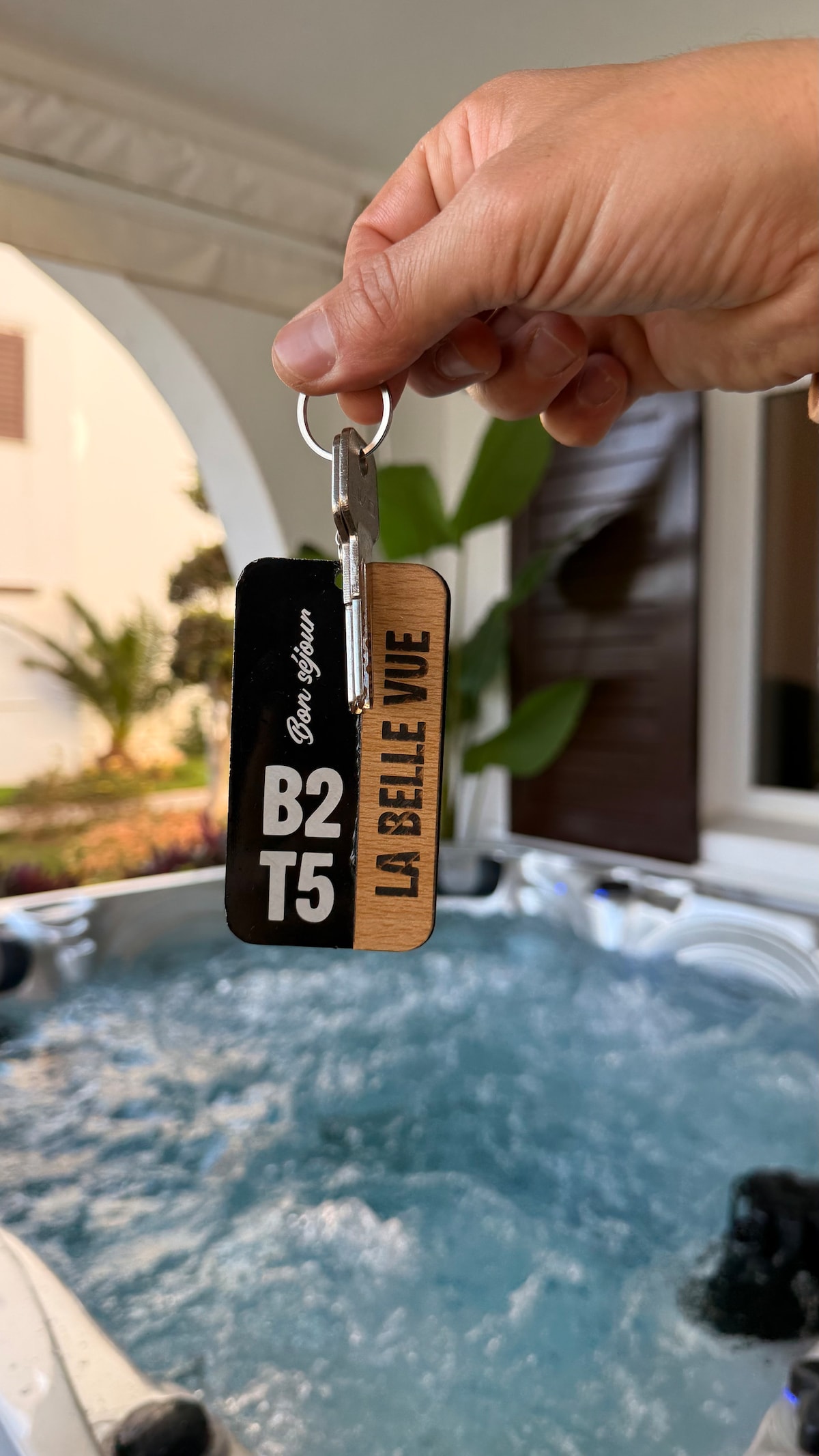 Appartement RDC avec grand salon équipé d'une smart TV (Netflix) et routeur 12 Mbps. Deux chambres spacieuses avec placards muraux et literies neuves (180 cm). Salle de bain marbrée avec double vasques, bidet et douche à l'italienne. Cuisine entièrement équipée : plan de travail en granite, réfrigérateur combiné, micro-ondes, grille-pain. Arrière-cour ouvrant sur espace végétalisé. Confort et modernité garantis pour des vacances parfaites !