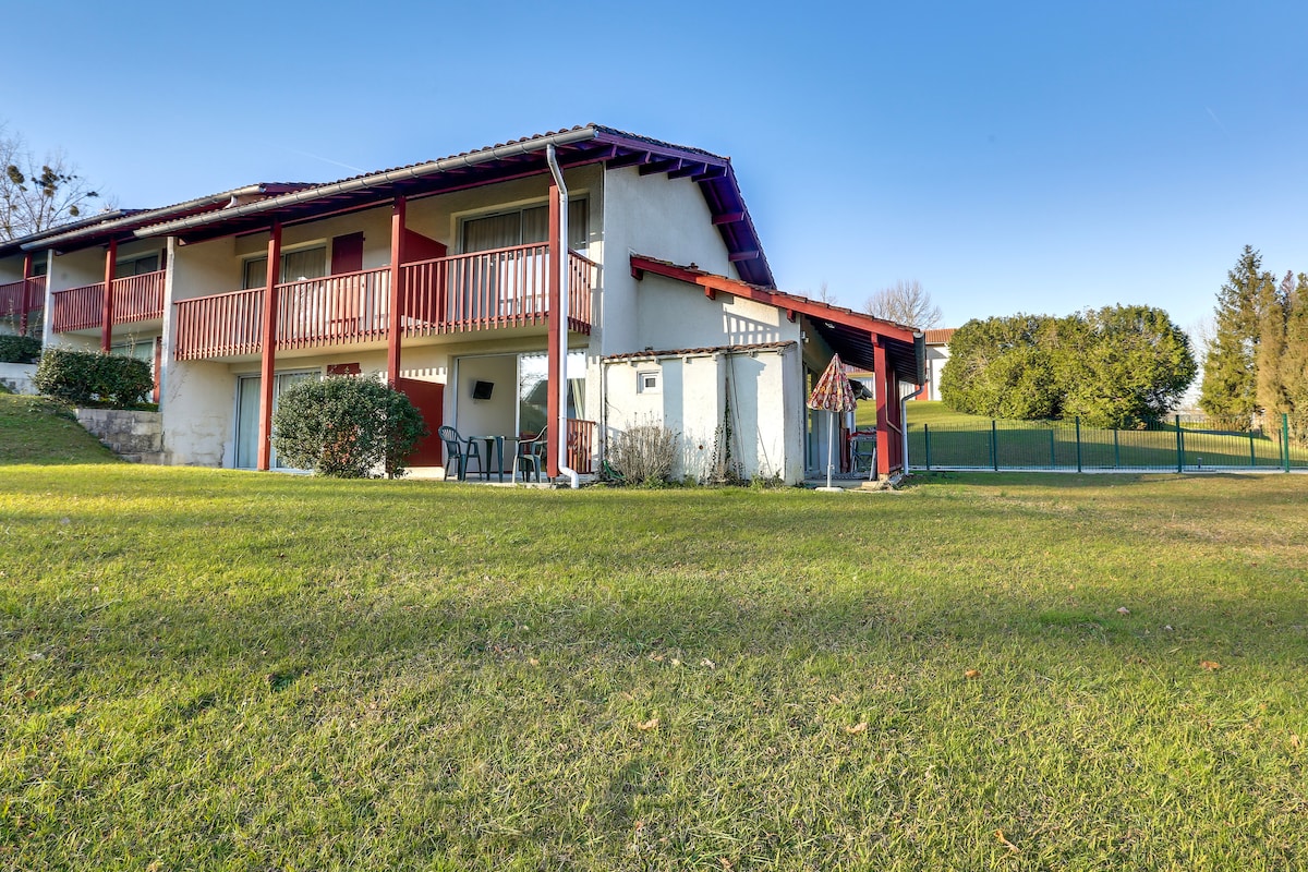 Petit Appartement de 20 m2 situé au cœur d’une rés avec piscine et espaces verts - accès avec plusieurs marches - petit séjour TV avec canapé et kitchenette équipée- chambre indépendante lit en 140 + rangement - le tout sur terrasse privative Linge de maison fourni - Entre mer et montagne , à 100 m du cœur du village de Souraide boulangerie ,restaurants , tennis, golf, commerces Le beau village d’Espelette à 5 mn Cambo à 10 mn -Bayonne Biarritz ST jean de Luz à 20/25mn-