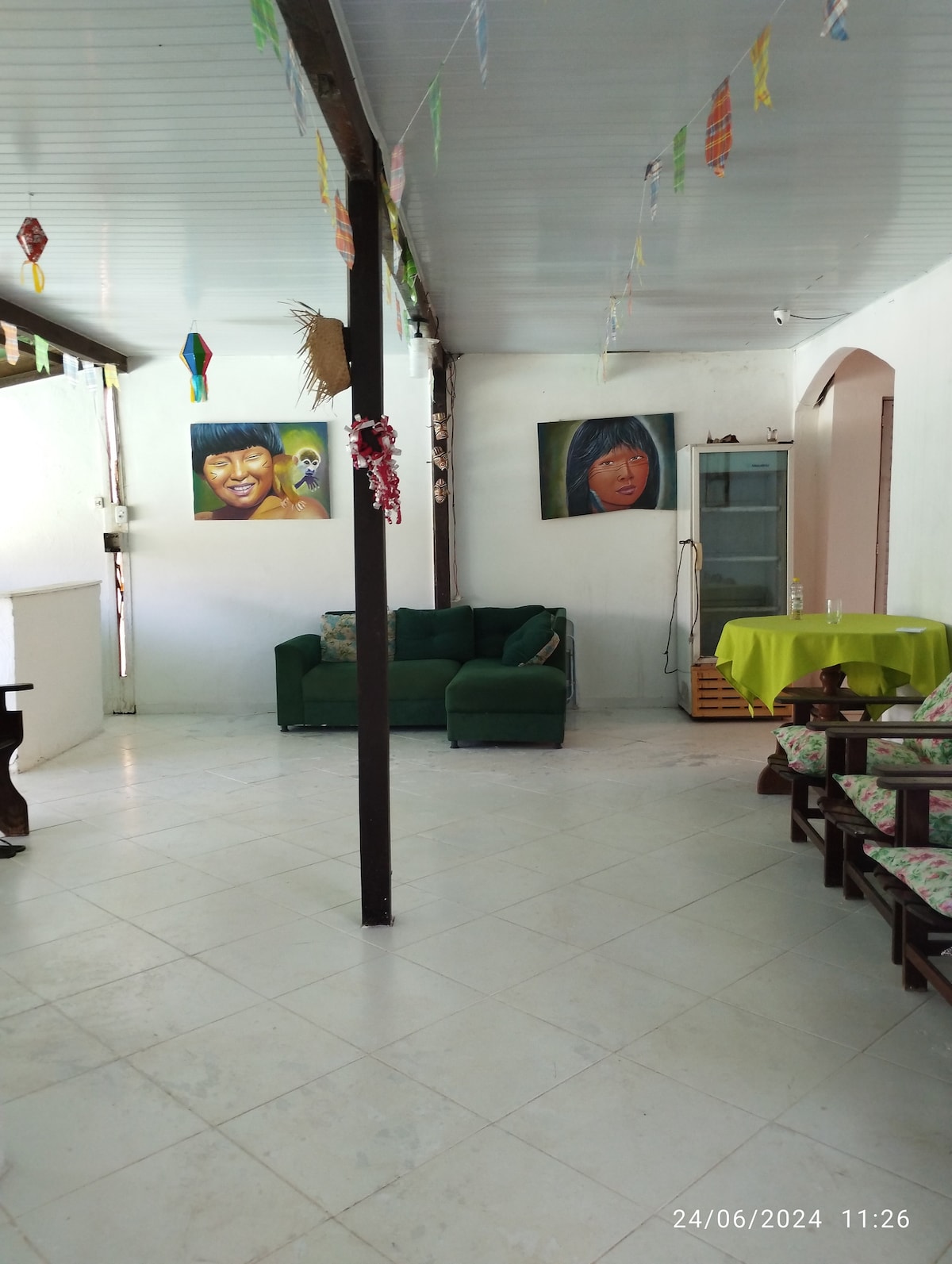 O Refúgio Marajoara é um lugar acolhedor e tranquilo, oferece tudo para uma hospedagem perfeita. Equipado com uma cama de casal, dois colchões extras, redes, ar condicionado, wi-fi, cozinha completa, chuveiro elétrico, espelho grande, tanque para lavar roupa, um jardim lindo na entrada e a vaga de garagem é dentro da propriedade. Próximo de mercados, farmácias, lanchonetes e também da estrada que chega a Praia do Pesqueiro. Seu pet é super bem-vindo em nosso refúgio.