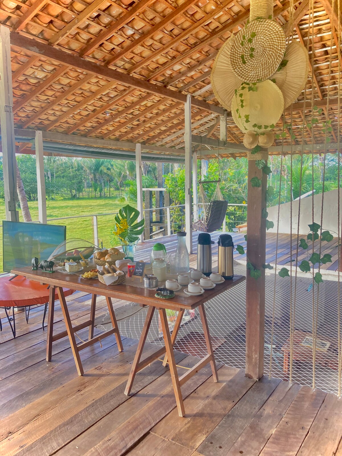 A casa Pamplona é um refúgio localizado na ilha do Marajó na cidade de Soure, no meio da Amazônia. Ampla, ventilada, confortável, segura. Fica no centro da cidade mais tem sentimento de fazenda. Fácil acesso à praia. Ideal para famílias que querem conhecer a Ilha do Marajó.