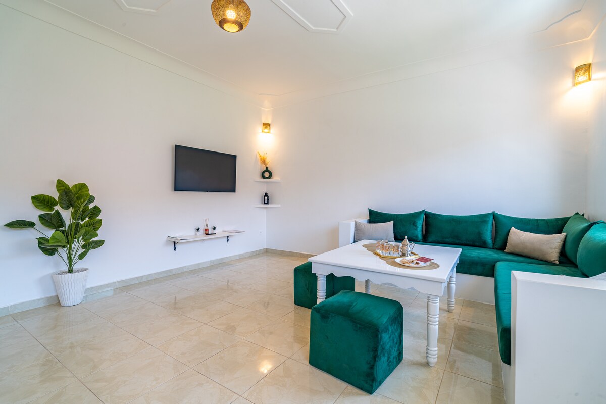 The location of our Marrakech Property is ideal for exploring the city, with easy access to public transport and local attractions. Welcome to our Two bedroom apartments for an exceptional homestay experience for two. With a comfortable double bed at the heart of the space, enjoy modern amenities including a TV, Wi-Fi access and air conditioning, as well as a fully equipped kitchenette.
