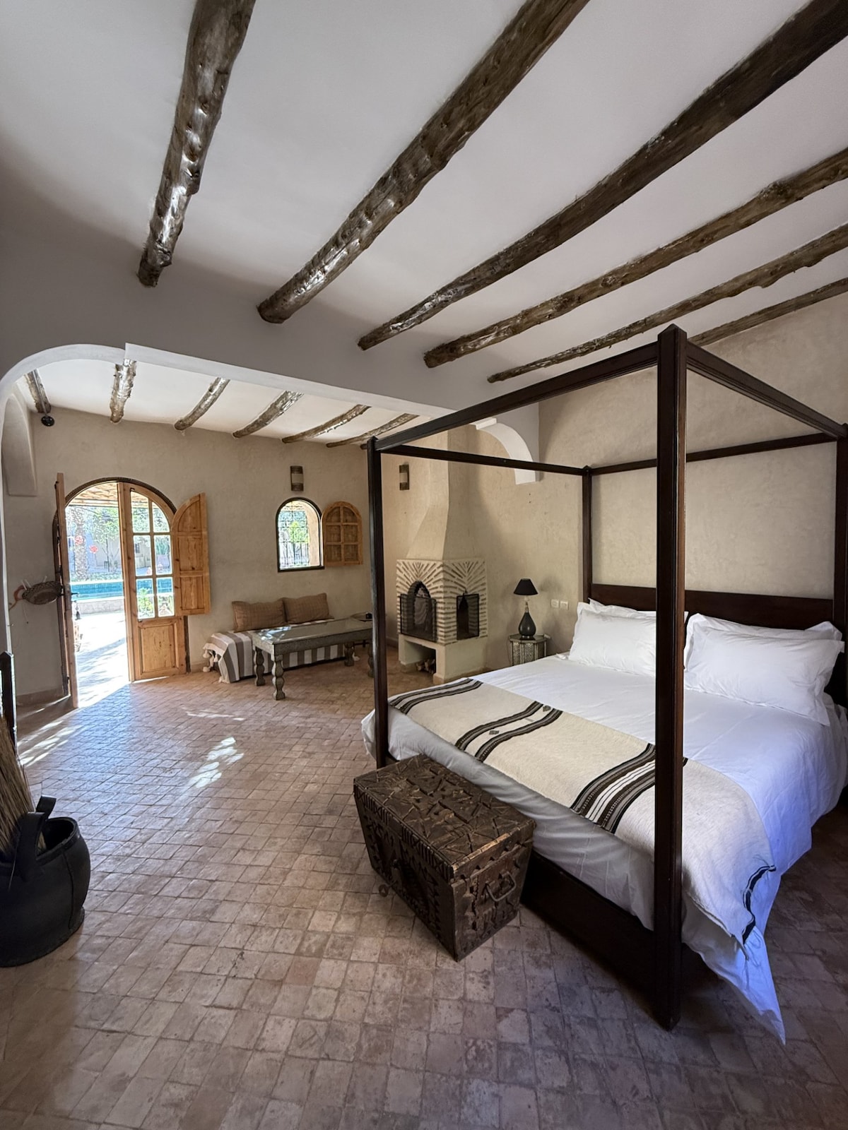 平均评分 4.83 分(满分 5 分),共 128 条评价带泳池的华丽卧室,位于摩洛哥传统庭院