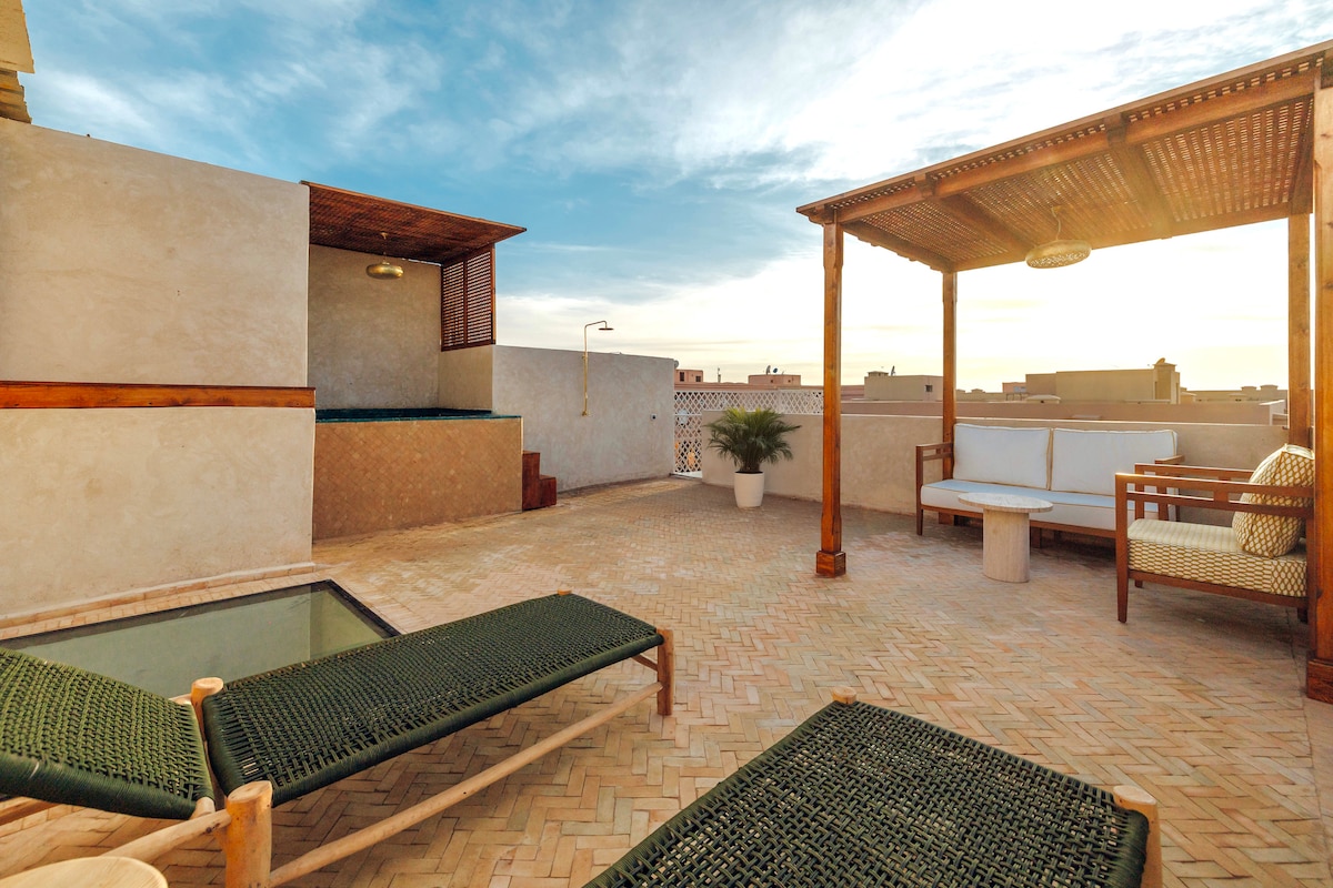 Détendez-vous dans votre Riad 100% Privatif Cosy et Beldi Chic. Situé en Médina, accés direct et parking surveillé 24/24h à 20 mètres du RIAD * Ménage sortie inclus * Déco raffinée * Capacité 7 personnes * Sanitaire haut de gamme * Riad tout confort tout en conservant son authenticité * Duplex de terasse vue Koutoubia et l'Atlas en toile de fond, superbe DAYBED pour Chiller * JACUZZI 40°+ BASSIN privée. * Jardin Majorelle et Gueliz a 5 min Un vrai paradis, on vous attend, Morgan et Houda