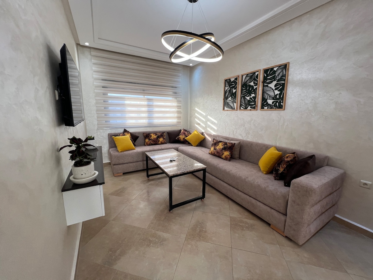 🌟 Un appartement d’exception à deux pas de la mer d’Agadir ! 🌟 Ce qui rend cet appartement unique, c’est avant tout son confort haut de gamme, son emplacement idéal et ses équipements complets pensés pour votre bien-être : 🛏️ Deux chambres spacieuses, dont une suite parentale avec salle de bain privée et balcon privé pour profiter du soleil en toute tranquillité. 🛋️ Un salon moderne et lumineux avec balcon, équipé d’une TV Smart 75 pouces, climatisation centralisée ...