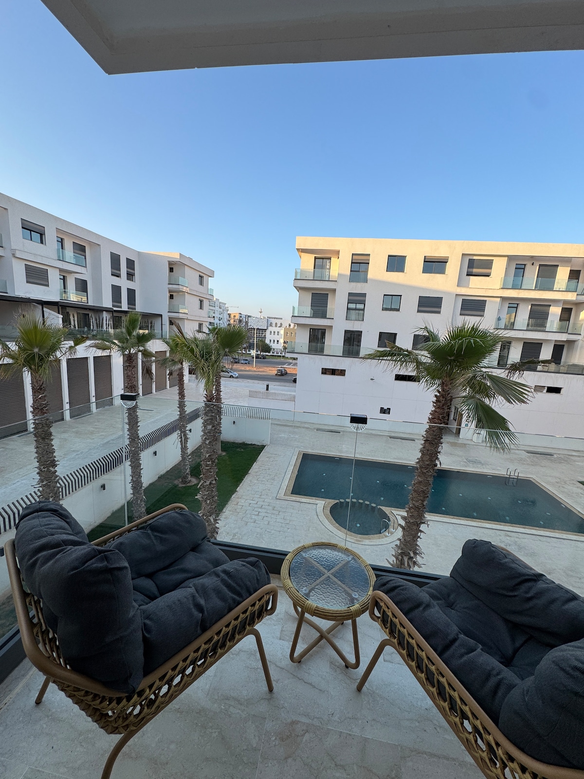 apartment, in the best area of Agadir, short walk from the beach and a short walk from the shopping center. There are some amazing and clean cafes / restaurants within walking distance of the apartment. You are secured 24 hours a day and access to 2 pools. an amazing place to live with an amazing sense of community. Suitable only for Professionals /couples and families /No men’s group will be accepted.