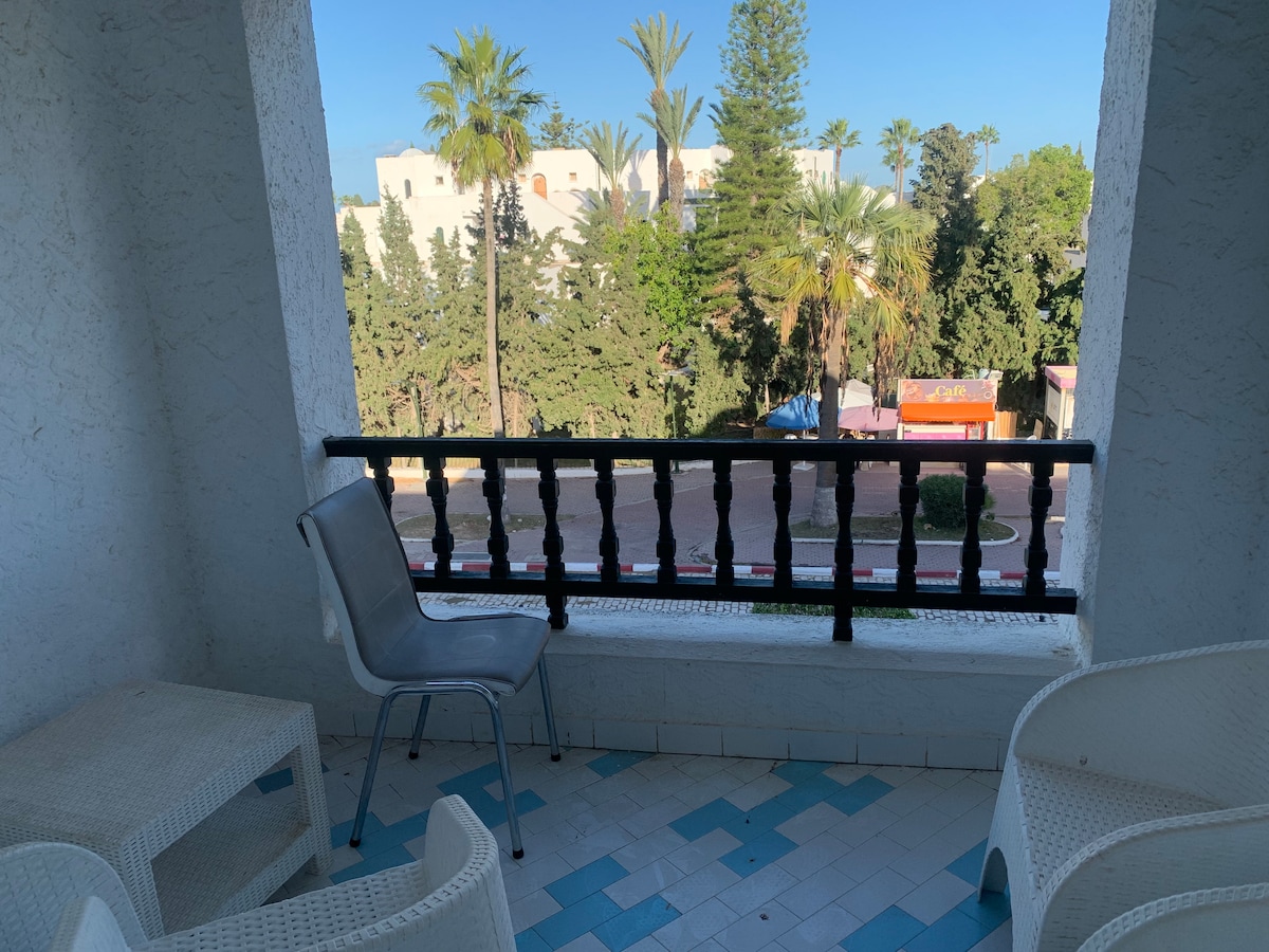 luxurious apartment in résidence Kanta with independent garden in a hotel Kanta located in the heart of the Sousse tourist area next to the sea, you have everything from the hotel swimming pool entertainment restaurant spa massage hairdresser store next to the port , NEXT to thé golf where there are all the lively restaurants everything is within walking distance excellent atmosphere . you will have free access to the swimming pool and the beach, also the hotel's night shows