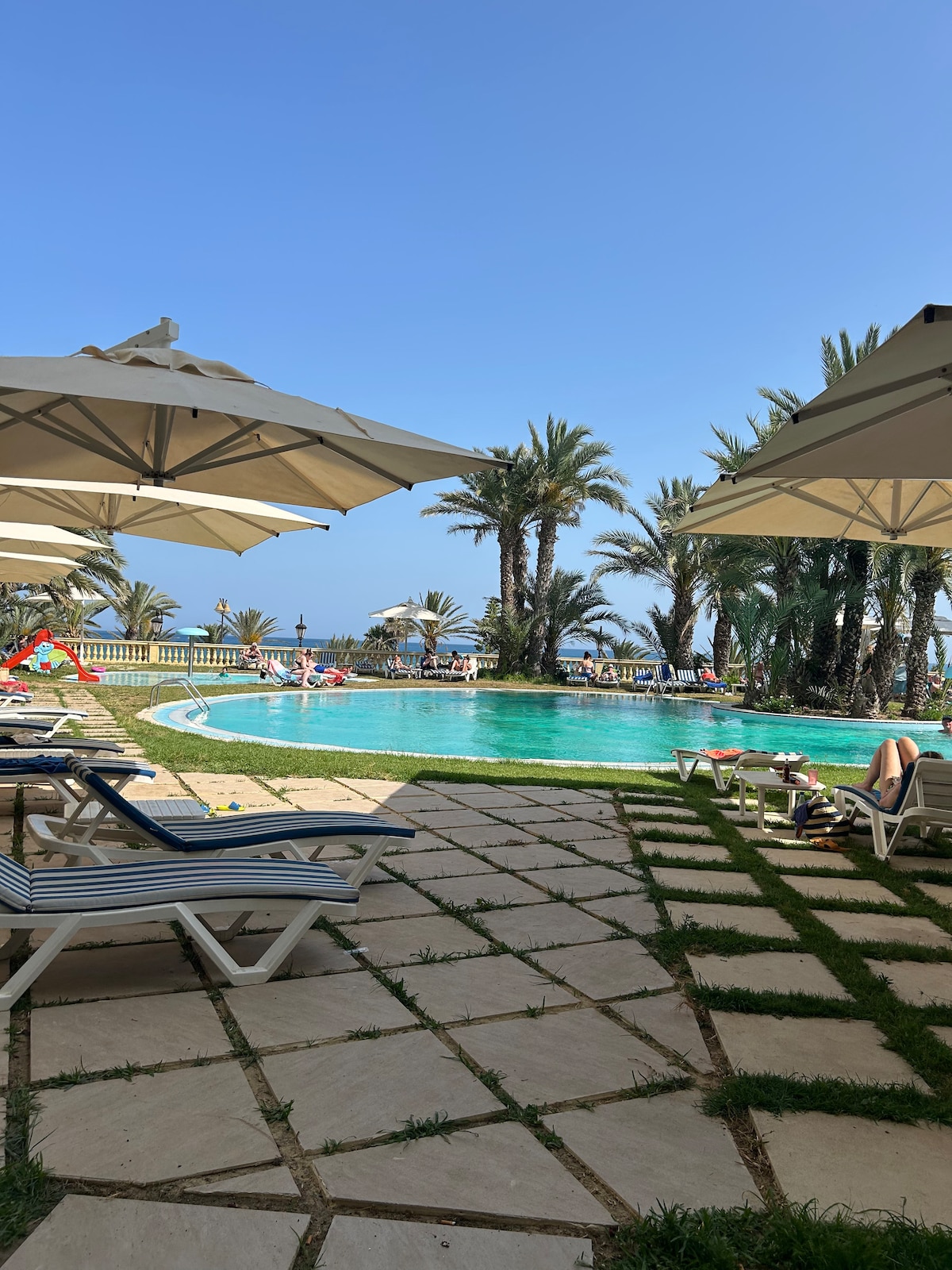★★★★★ Luxury apart on 2nd floor 80m² furnished air conditioned with WIFI in residence with a private beach Swimming pools restaurant cafes store pizzeria Sauna Massage Thalaso Fitness High security guaranteed (24/7 security guards and cameras in & outside) Deposit requested, refunded at the end of the stay Extra cleaning option suggested