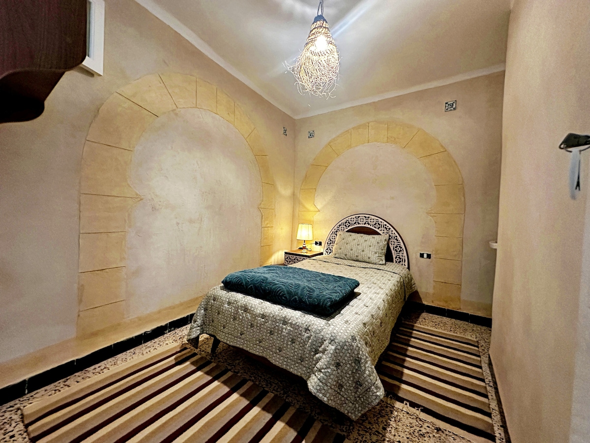 Située au cœur de la médina de Sousse, cette chambre simple est idéale pour les voyageurs solo recherchant un séjour simple et économique. Les douches et toilettes sont partagées et entretenues quotidiennement. À quelques minutes à pied de la plage, du port et des principaux sites touristiques, c’est un excellent point de départ pour découvrir la ville et profiter de l’ambiance authentique de la médina.