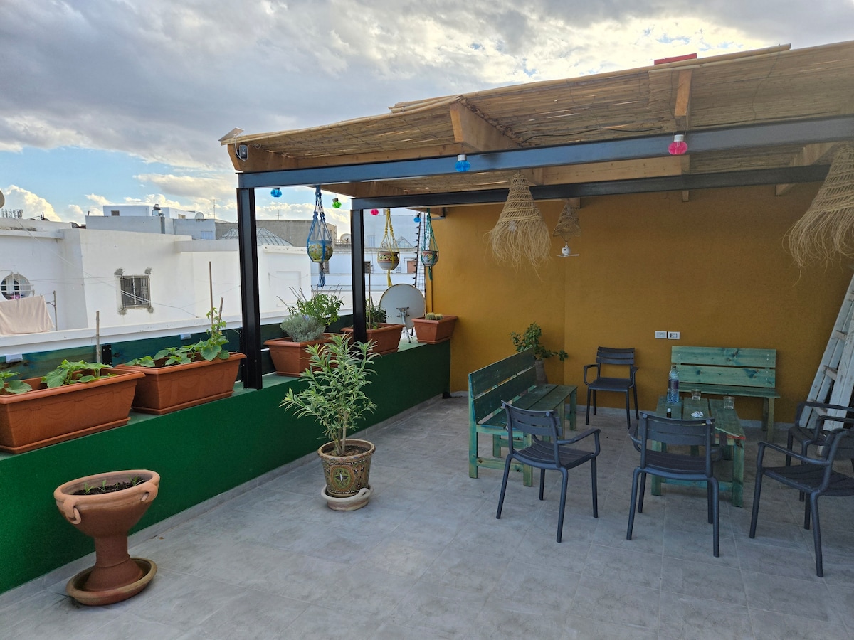 Skip the stress, keep the fun! Walk to beaches, bars, boutiques, and the best local eats in few min—no need for traffic or taxis. Ideal for groups who love being in the heart of the action! (Tej Marhaba, Riadh Palm, mövenpick hotels and , Saloon, Legends, Bonapart, the First, restaurants are walking distance.) Heads Up: 🚶♂️ No elevator—think of it as a mini workout. 🚗 No private parking, but public options are nearby.