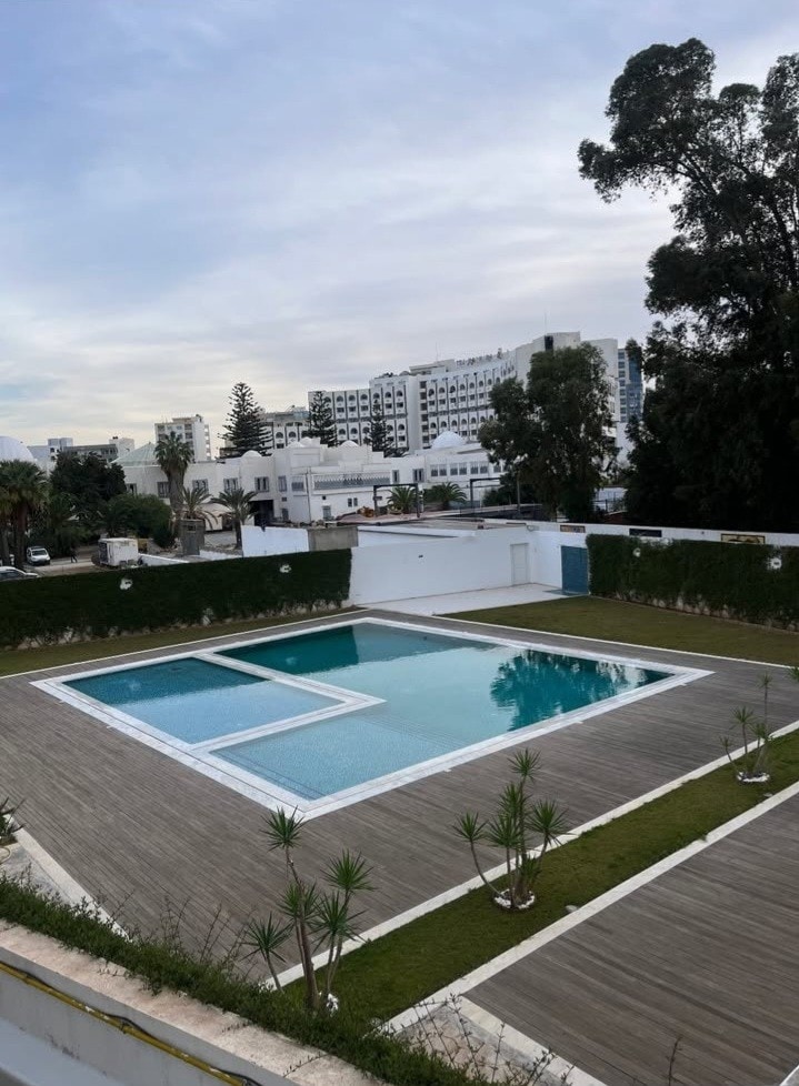Profitez d'un séjour inoubliable dans un duplex luxueux avec ascenseur, piscine privée, jardin, suites élégantes, salon convivial avec cheminée, fontaine en pierre, et espace sportif. Luxe et bien-être assurés dans cette propriété d'exception, idéalement située dans un quartier calme et résidentiel. -Reservoir d'eau pour résoudre le problème de coupage d'eau au mois d'été en Tunisie.