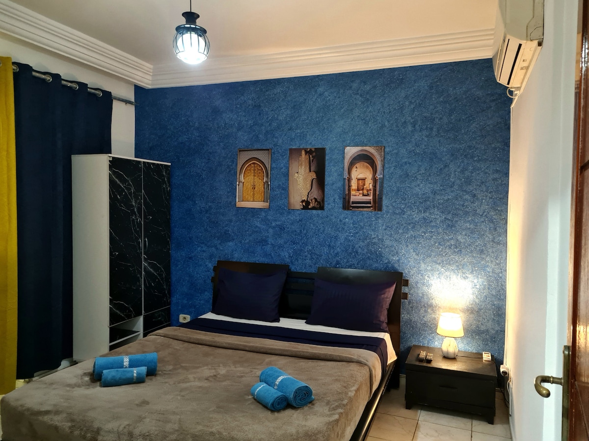 bel appartement entièrement meublé à 5 min à pied de la plage. la localisation est parfaite entre la zone touristique, la plage et la vieille ville ( medina), tout est accessible à pied, y compris les restaurants, les cafés, les magasins, les supermarchés,la plage et le souq l'appartement est situé en 4ème étage d'une résidence moderne et sécurisé avec une vue sur la plage depuis le salon et les chambres . La quartier est sécurisé pour les promonades le soir.