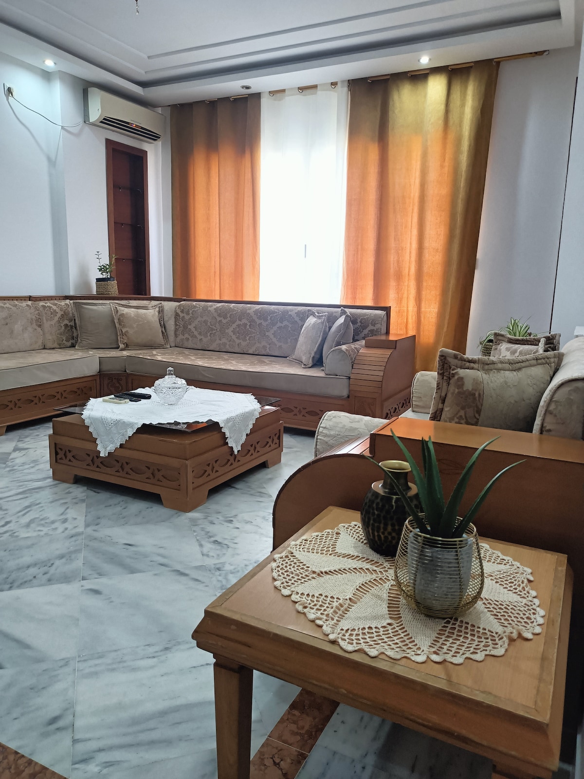 Skip the stress, keep the fun! Walk to beaches, bars, boutiques, and the best local eats in few min—no need for traffic or taxis. Ideal for groups who love being in the heart of the action! (Tej Marhaba, Riadh Palm, mövenpick hotels and , Saloon, Legends, Bonapart, the First, restaurants are walking distance.) Heads Up: 🚶♂️ No elevator—think of it as a mini workout. 🚗 No private parking, but public options are nearby.