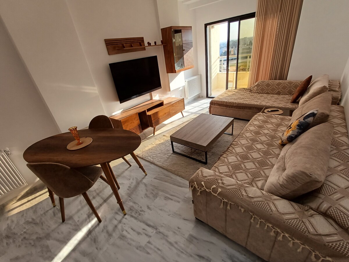 RESET BUTTON: Ramadan Mood 🌙 Come embrace the holly month in my apartement and enjoy the unique atmosphere of peace and devotion . Our apart is in Sahloul 4 5 minutes to the center of sousse and Kantawi port 10 minutes to the mall of sousse . 7 minutes to the beach 30 minutes to Monastir airport 1.30 minutes to Tunis Carthage airport For late same day bookings please give the host 1h to make the cleaning control
