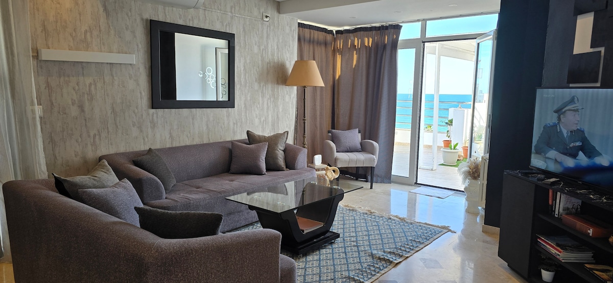 Atico que se encuentra en la zona turística próxima a los hoteles del centro de Sousse Corniche, restaurantes,pubs, comercios y a escaso metros del paseomarítimo y a menos de un kilometro de la Medina histórica de Sousse. Desde sus 3 terrazas, tienen unas vistas de casi 360º de la ciudad. Su gran atractivo es la luminosidad, su tranquilidad y las grande posibilidades para disfrutar de una vacaciones inolvidables.