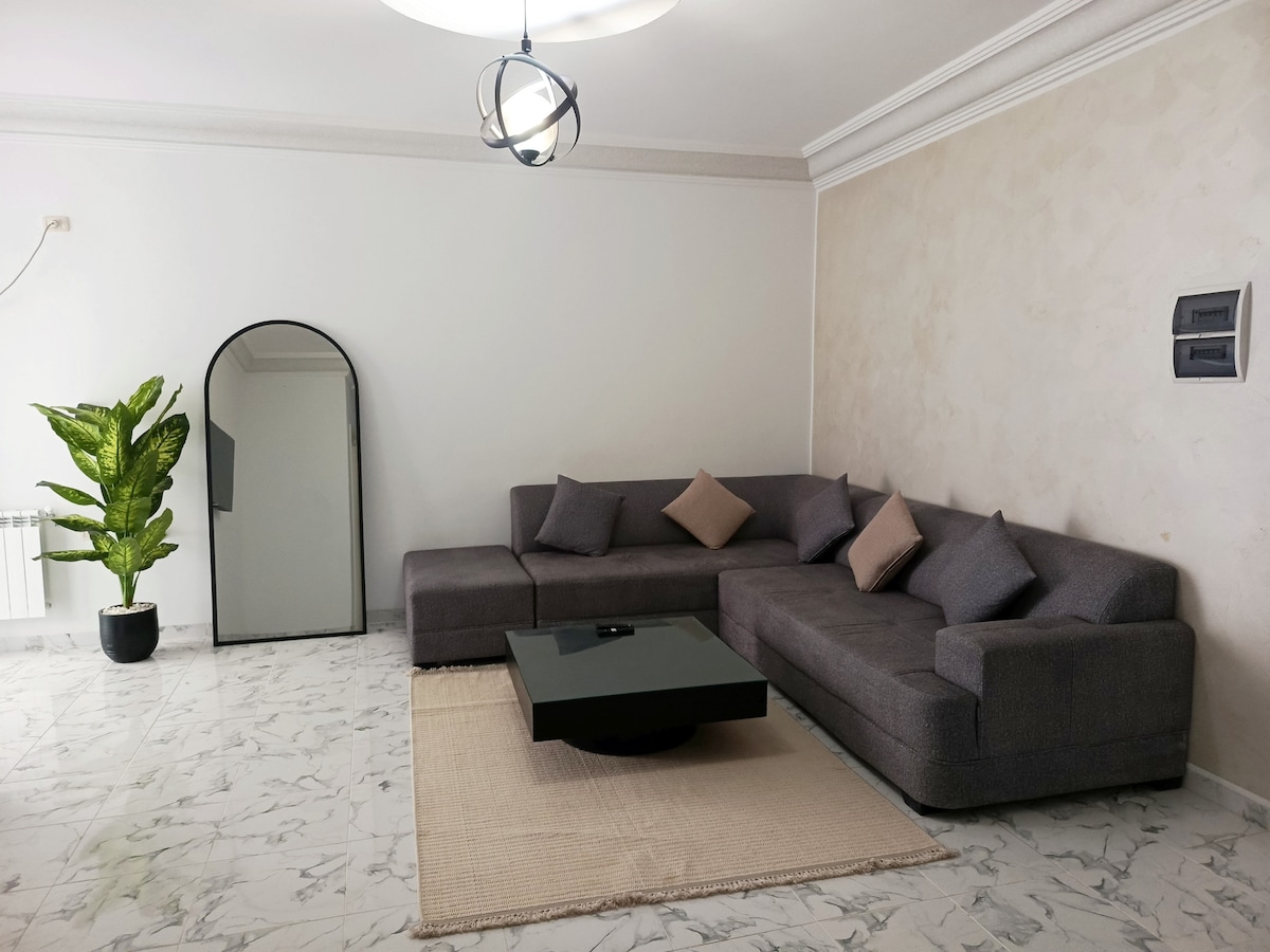 RESET BUTTON: Ramadan Mood 🌙 Come embrace the holly month in my apartement and enjoy the unique atmosphere of peace and devotion . Our apart is in Sahloul 4 5 minutes to the center of sousse and Kantawi port 10 minutes to the mall of sousse . 7 minutes to the beach 30 minutes to Monastir airport 1.30 minutes to Tunis Carthage airport For late same day bookings please give the host 1h to make the cleaning control