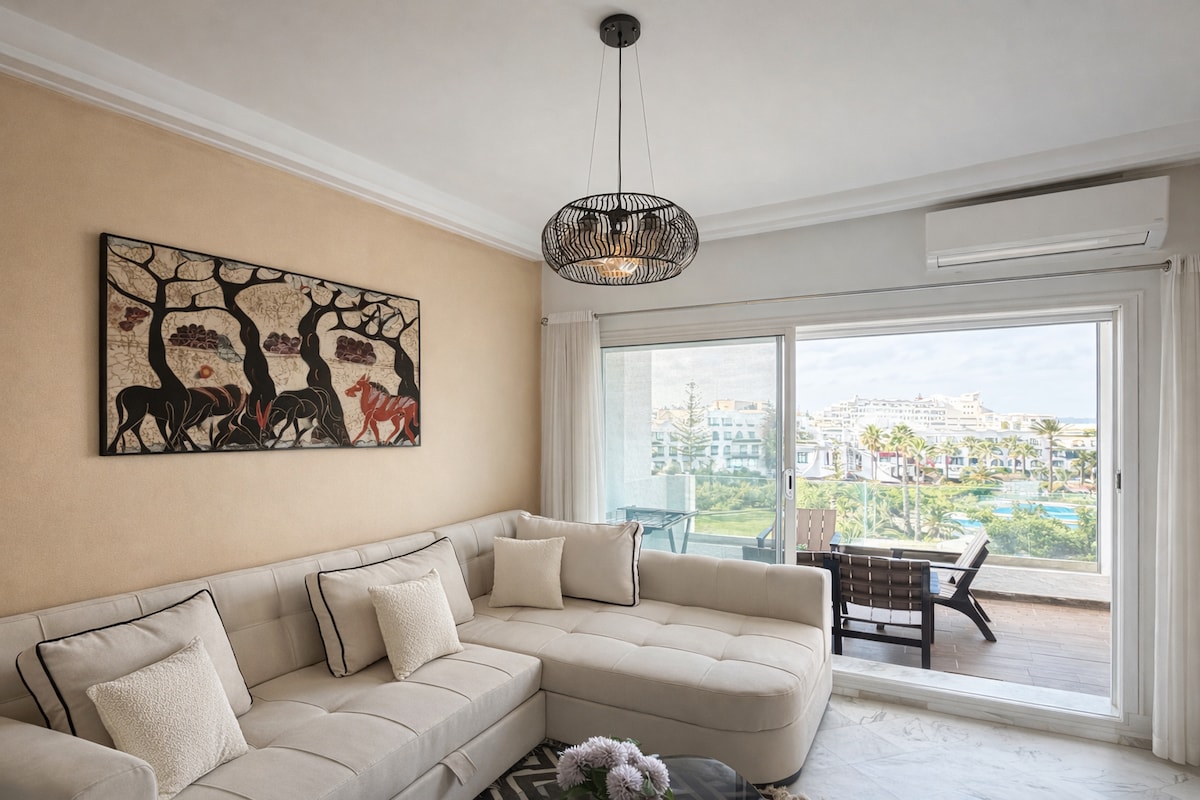 Enjoy refined coastal living in Kantaoui. This spacious luxury apartment offers beautiful sea views, two comfortable bedrooms, high-speed WiFi, and IPTV for your entertainment. The bright open living area is perfect for relaxing, and secure basement parking adds extra convenience. An ideal seaside retreat combining comfort, elegance, and modern amenities