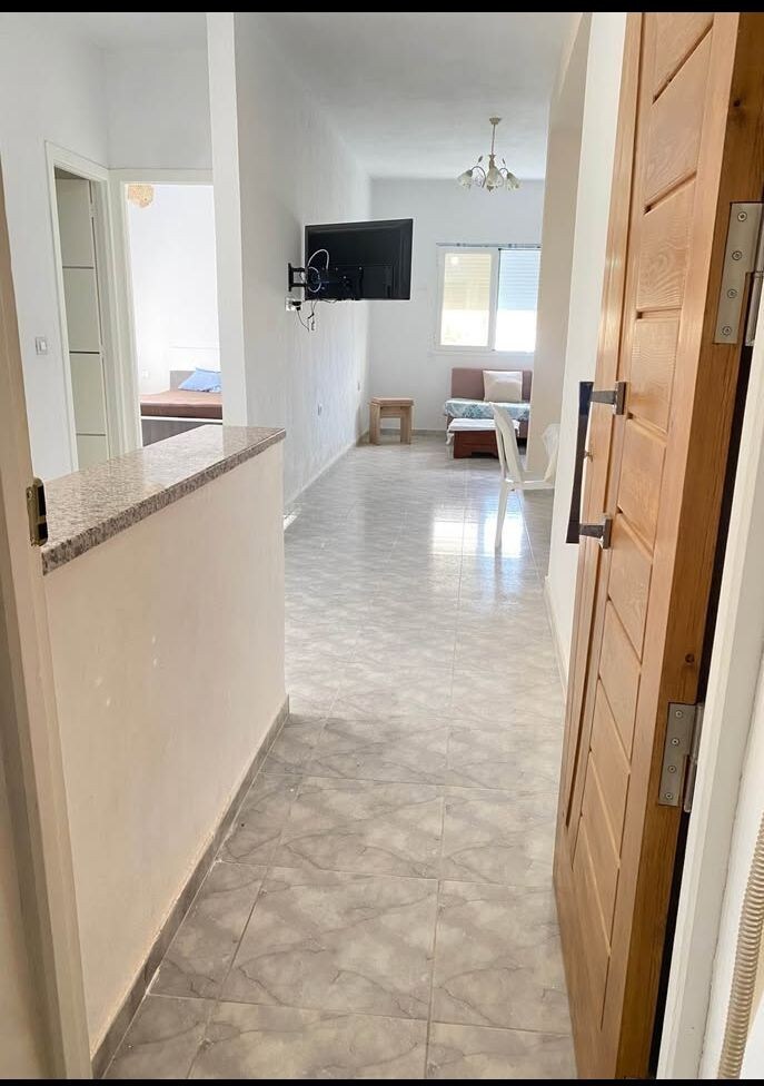 Apparemment tout neuf a 200metres de la plage dans un immeuble de haut standing, un appartement offre un confort haut de gamme…dispose d’un salon a double canapé Cuisine bien équipé..salle de bain avec une douche italienne spacieuse..une chambre avec un lit king size…l’appartement est climatisé et dispose d’un chauffage central…un balcon a vue sur mer…et loin de tout nuisance. tout près de la plage..les boites de nuits.restaurants et les cafés. ce qui lui confère un charme sans pareil