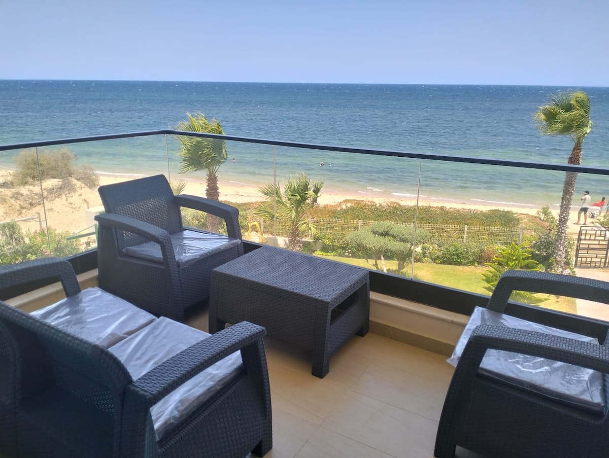 Cet appartement est situé à Hammam Sousse au cœur de la zone touristique de Sousse dans une Résidence pieds dans l'eau. La résidence bénéficie d'une grande piscine commune Cet Appartement est composé de deux suites parentale, un grand salon spacieux et ensoleillé, une cuisine totalement équipé Le salon et la cuisine possèdent un balcon communiquant, vous offrant une sublime vue mer . Les chambres à coucher ont aussi un grand balcon communiquant avec une vue mer dégagée .