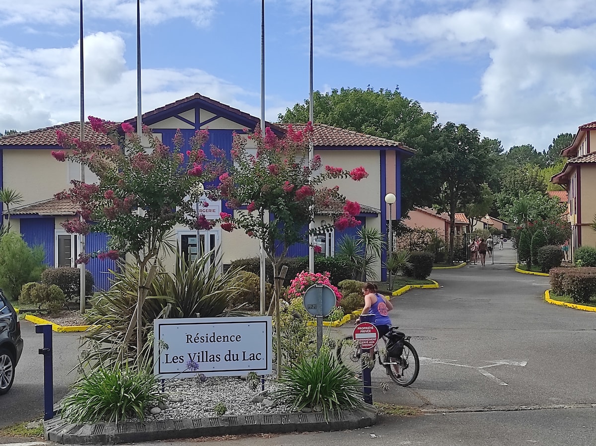 T2 au 1er étage avec vue dégagée sur le lac marin. Vous pourrez assister aux couchers de soleil depuis la terrasse couverte qui domine le lac marin sans vis à vis. Le mail (centre tous commerces, restaurants, boutiques, magasins alimentaire, etc..) est à 10mn à pied de l'appartement et l'océan à 30 mn. Il est équipé d'un salon avec canapé convertible, chambre avec lits jumeaux, cuisine, salle d'eau. Le logement est tout équipé sauf draps et serviettes de toilette.