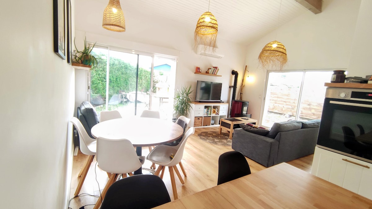 Venez vous reposer en famille à la Pignada. Belle villa landaise entièrement refaite, dans un environnement paisible de 4000m2. Venez profiter de l'arrière saison, avec de belles promenades au menu, champignons etc....dépaysement garanti!! Les plages sont encore belles à cette période. Située dans un petit hameau, cette maison N'EST PAS ADAPTÉE AUX FÊTES SOIRÉES OU GROUPES BRUYANTS. Nous tenons au respect du voisinage!