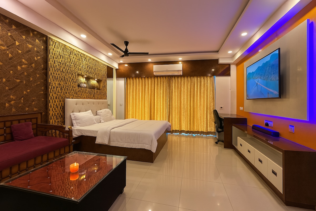 Welcome to Le Chateau – A Cozy Couple’s Escape at Siddha Xanadu Studios, Rajarhat, East Kolkata. This stylish, couple-friendly studio apartment is perfect for romantic getaways, staycations, or weekend escapes. Just 15 mins from the airport and 10 mins from the IT hub, it offers modern comfort and easy city access. Enjoy 24/7 self check-in with a secure lockbox, enhanced security, and a warm, intimate setting—ideal for young couples seeking privacy, coziness, and hassle-free luxury