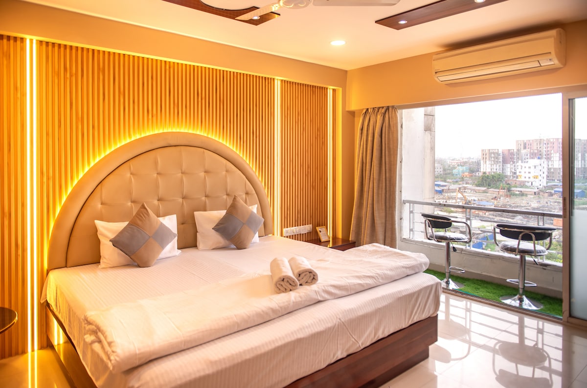 Fully furnished luxarious smart studio apartment with south facing balcony, gym and garden (couple friendly).Near Airport,CC2.Guests have fun with the whole family and friends. The south facing balcony is amazing. Fully equipped kitchen with induction utensils, refrigerator ,microwave and daily needs.High speed wifi over 150 mbps.We provide tea and coffee n spices also there.A peaceful studio apartment with self check in.24×7 security...Please visit n enjoy ❤️❤️