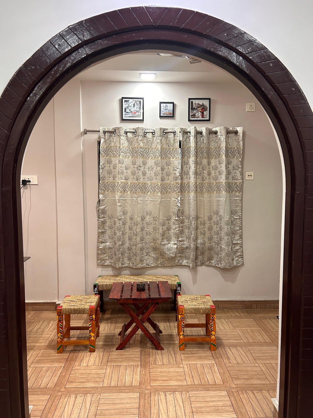 This charming two-story bungalow near BB-BC Park in Salt Lake,blends modern comforts with nostalgic charm. It’s a 10-minute walk from City Centre and a short drive from Sector V making it ideal for vacations or work trips.The ground-floor apartment features a queen-sized bed, retro-modern en-suite bathroom,a fully-equipped kitchen & a cozy living area with a private balcony.Guests enjoy secure access, high-speed Wi-Fi, air conditioning,smart TV, optional parking, & terrace access and paid meals