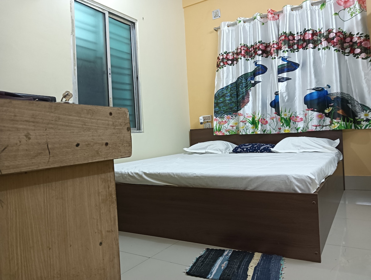 A beautiful and peaceful 4.90 rated an almost 5* star-rated stay with metro and market within walking distance. The area is lush with greenery and well-grown trees. Top hospitals like RN Tagore, Medica, Peerless, Shankar Netralaya, and Netaji Cancer Hospital are just 1-4 km away, easily accessible by taxi or toto. Since starting 20 months ago, nearly every guest, including visitors from the US, Canada, Oman, Australia, the UK, France, and Russia, has rated us almost 5 stars across all parameters