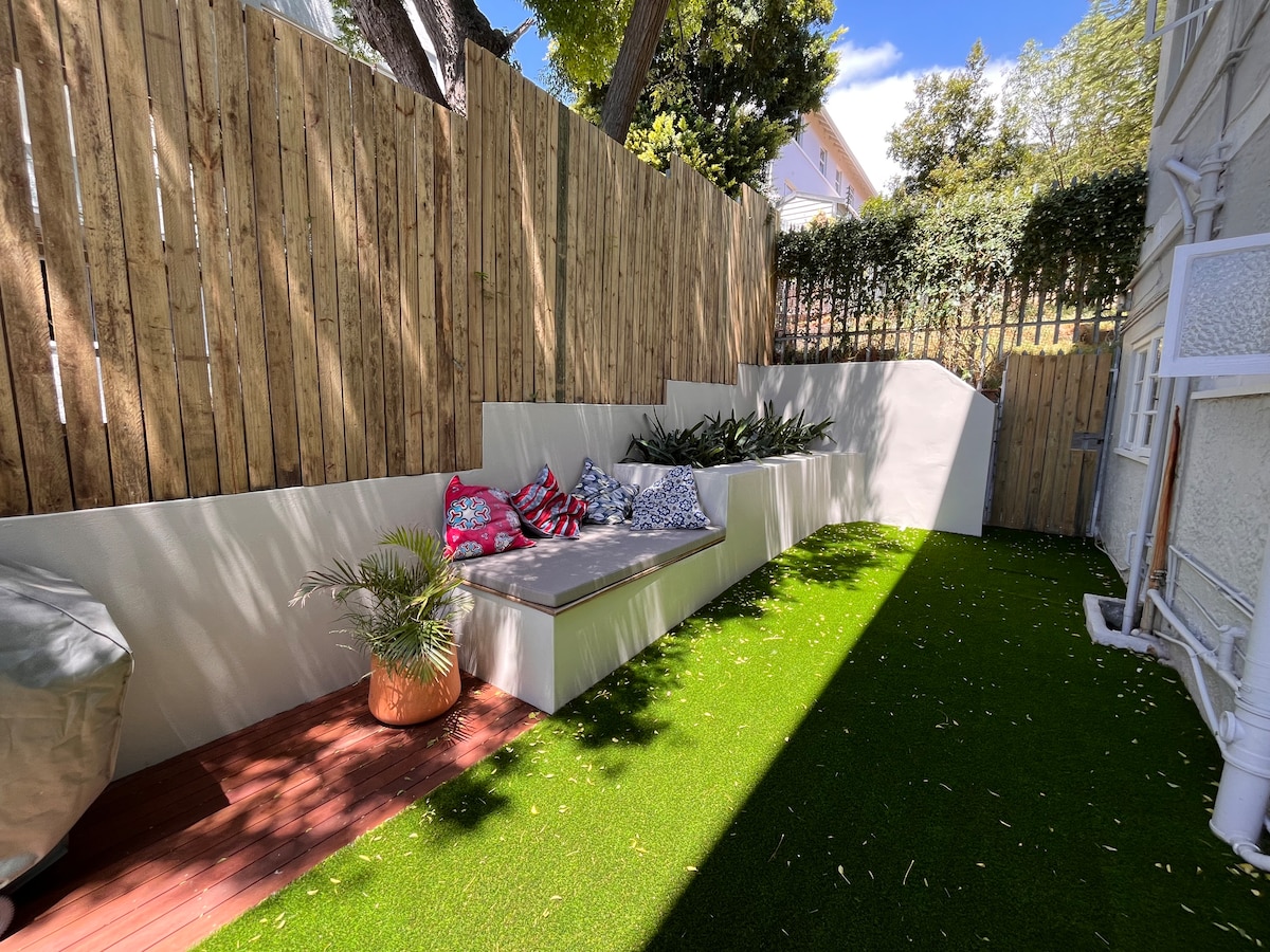 Wake up to birds singing in the Hibiscus tree outside this peaceful, two-story coastal apartment. Lounge on the terrace with views of landscaped gardens, the ocean, and surrounding mountains. Be sure to enjoy the refreshing pool after a long day. We are not able to accommodate children The first level (ground floor level of the villa)consists of the cosy decorated lounge with flat screen TV, a dining area and the fully equipped little kitchen which can be separated from the lounge by an artfully painted sliding door. A small terrace invites you to sit outside for breakfast or sundowners. From the lounge a staircase leads downstairs to the basement with it's bedroom, a passage to the bathroom(shower only)and the dressing room. The King size bed can be separated and configured into single beds. Our guests are invited to sit in the beautifully landscaped garden on their own terrace with sun loungers and side table or enjoy the big swimming pool . From here stunning views over the whole bay and the surrounding mountains as well as spectacular sunsets will delight your senses. We respect the privacy of our guests yet we enjoy to extend hospitality and the feeling of home from home .We are available under the same roof to advise,support,recommend and help our guests to make their stay a memorable one. Camps Bay offers restaurants, cafes, bars, shopping, and different beaches. It has been officially declared the safest area of Cape Town, due to privately organised street patrols and security companies. The beach is a 15-minute walk away. MyCity bus stop is circa 400m away on Geneva Drive with one route clockwise and another anticlockwise to transport visitors either to town or downhill to the Promenade . Uber taxis or any of the local companies are another option From our house it's a 15 min walk downhill into Camps Bay Security : Street parking only - Camps Bay has been officially declared the safest area of Cape Town The property is fully in and outdoor secured