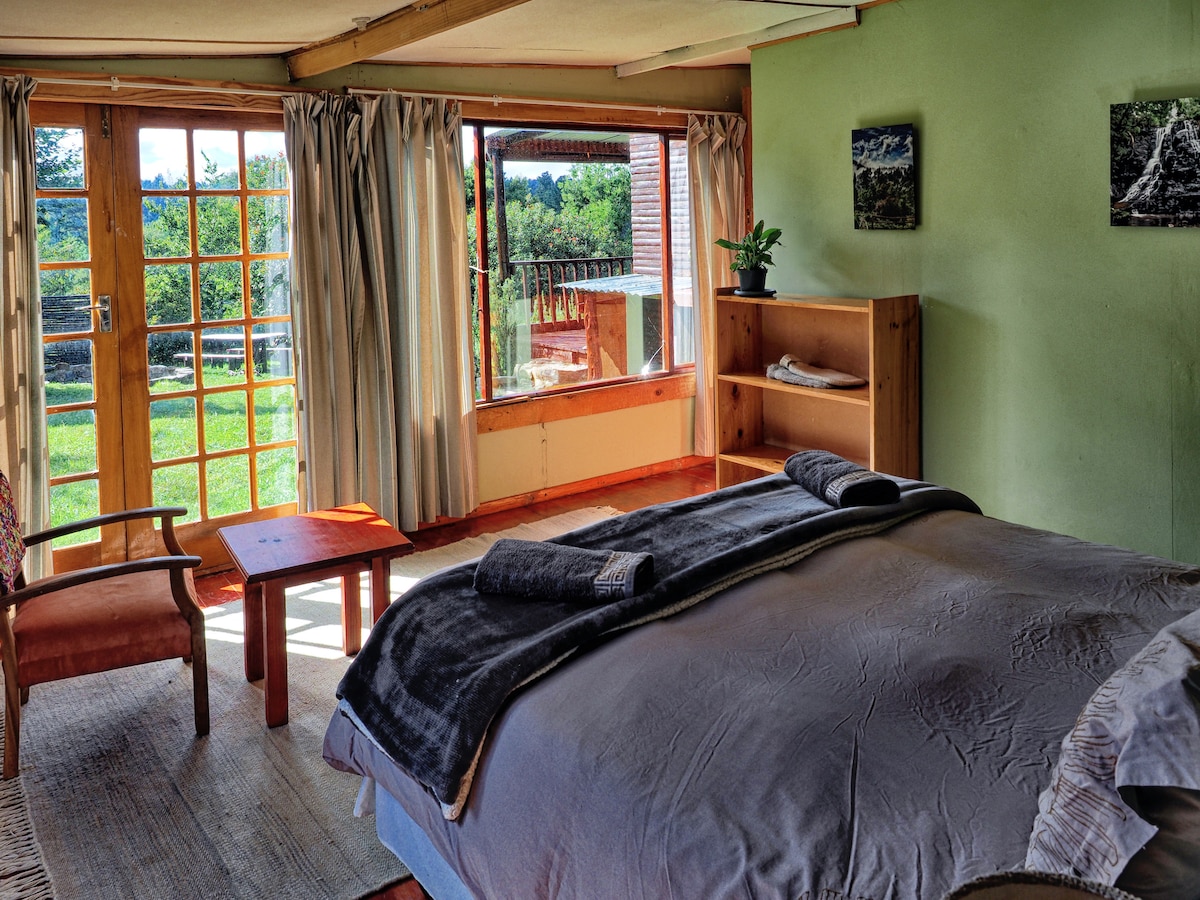 Luxury timber cabin situated in the forest in Dullstroom, Mpumalanga. The house has large widows providing a 360 view of the surrounding forests, giving guests a calm and relaxed atmosphere. Walking distance from restaurants, shops, hiking, flyfishing, and mountain biking trails. 1 bedroom with a double bed with a futon bed in the study that can accommodate an extra 2 guests. Safe and secure parking available.